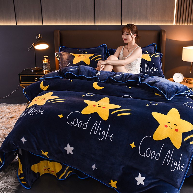 商品名称:雨洋2025新款加厚保暖8.5斤牛奶绒金貂婴儿绒四件套满天星
