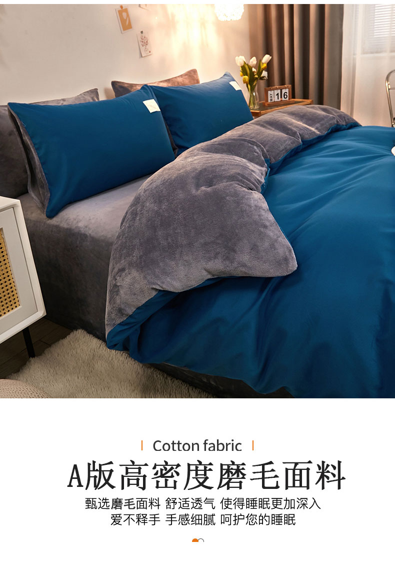 啊雅家居 2025新款水洗棉加绒单面绒被套 克莱因蓝加牛奶绒