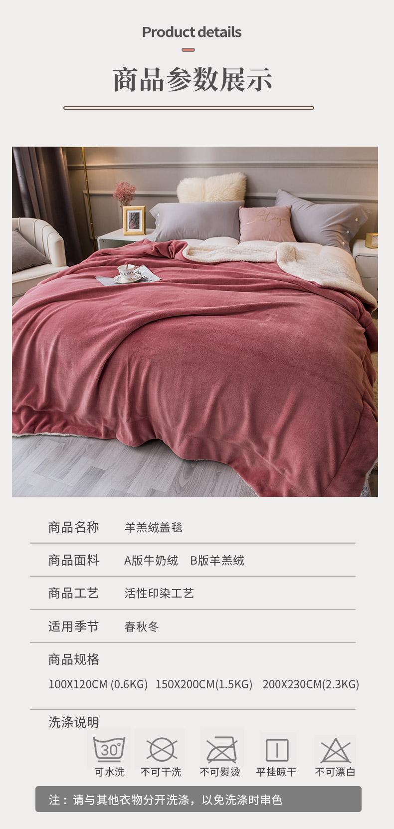 商品名称:(总)欧邦 新款爆款纯色羊羔绒双层毛毯