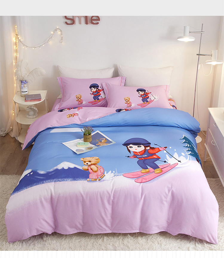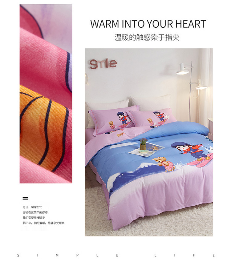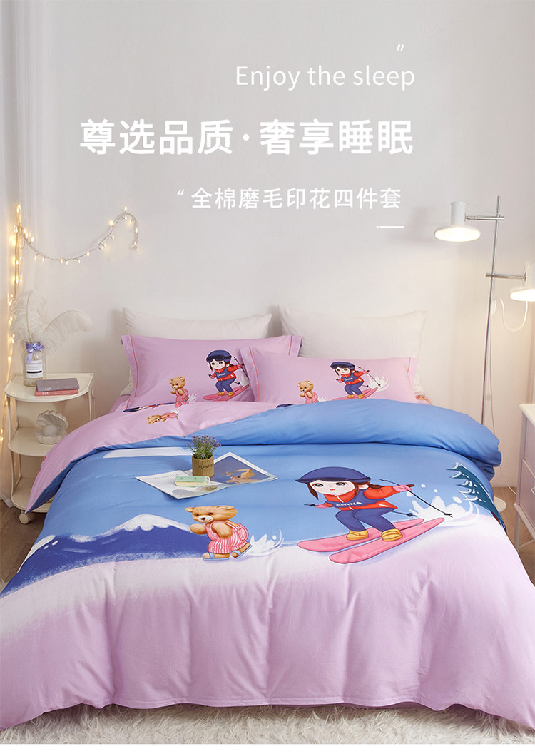 金纱玉纺2022新款全棉生态大版磨毛四件套蜜雪冰城-紫