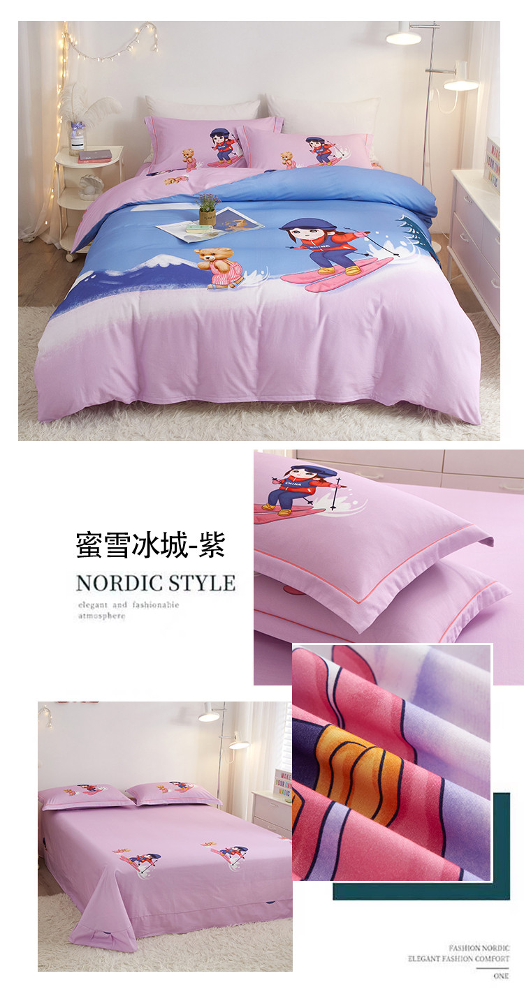 商品名称:金纱玉纺2022新款全棉生态大版磨毛四件套蜜雪冰城-紫