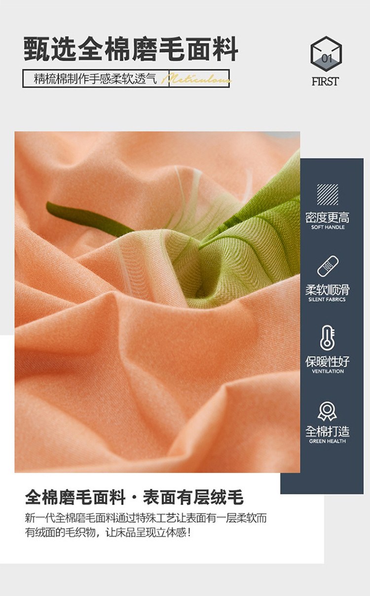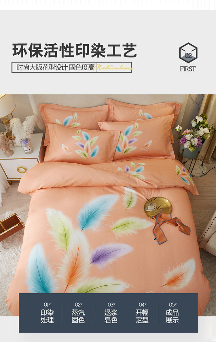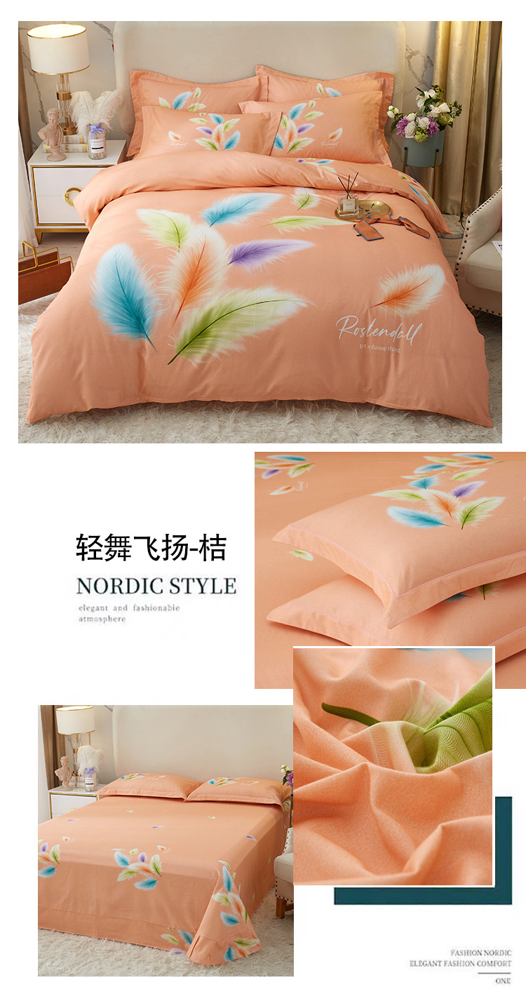 商品名称:金纱玉纺2022新款全棉生态大版磨毛四件套轻舞飞扬-桔