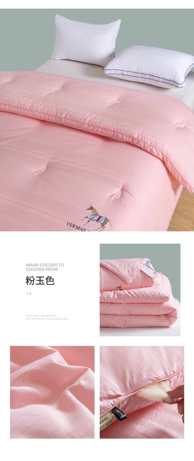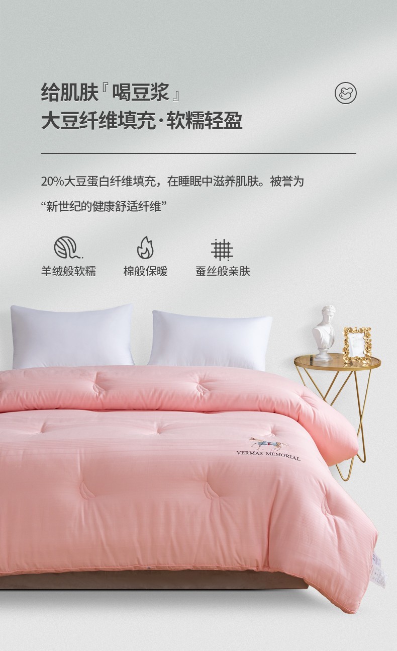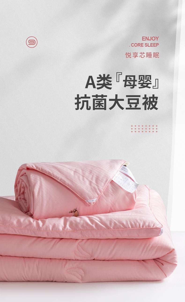 • 91家纺网 家纺一手货源 找家纺 薇玛仕 2023新款A类母婴抗菌绣花大豆被冬被 粉玉