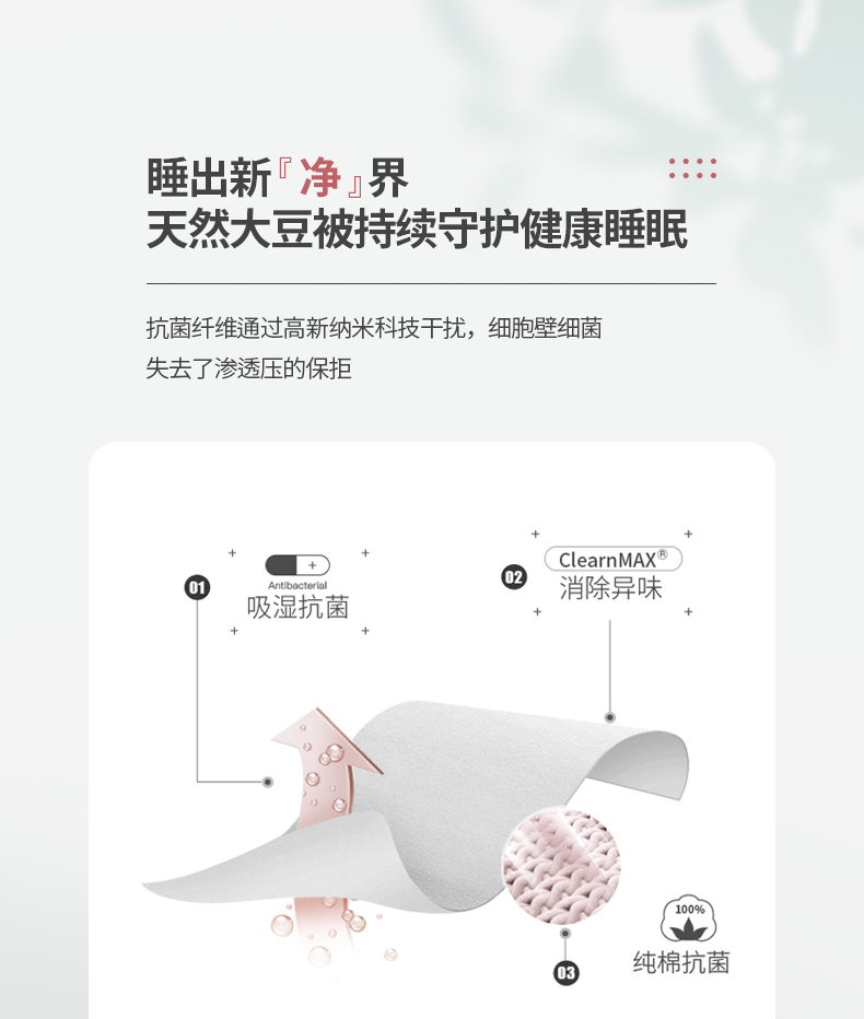 • 填充纤维种类: 大豆蛋白改性聚酯纤维