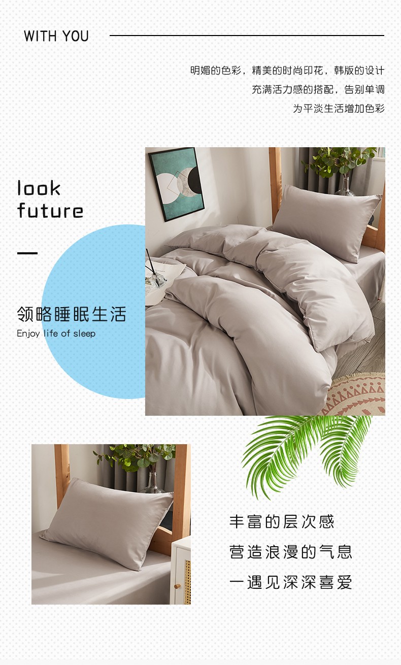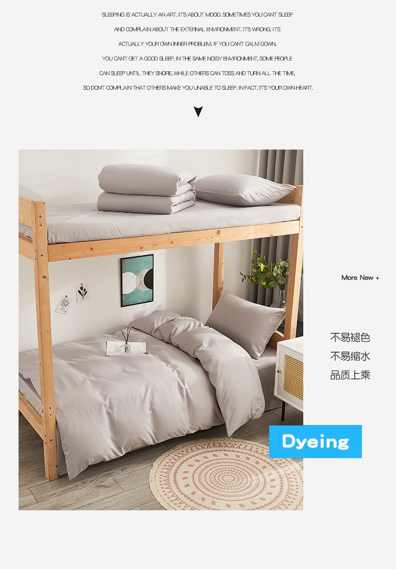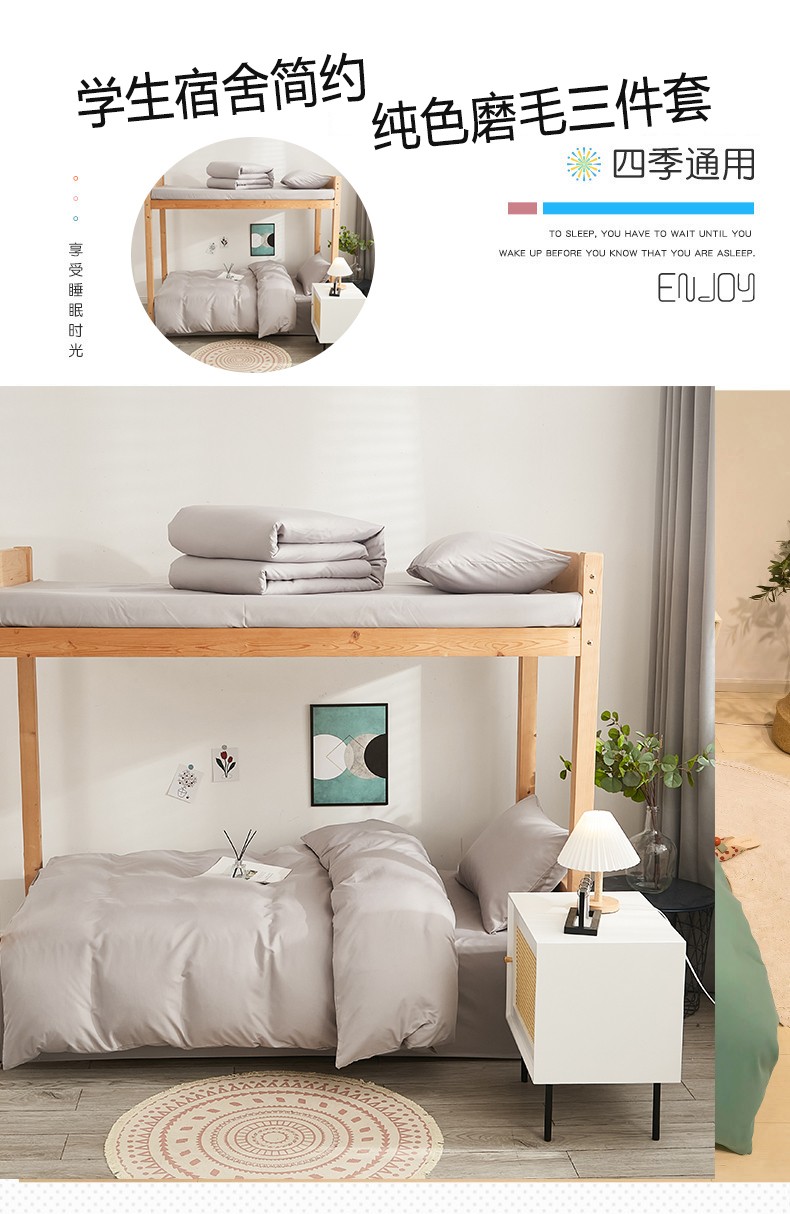 啊雅家居 新款ins学生宿舍双拼纯色磨毛三件套 浅灰