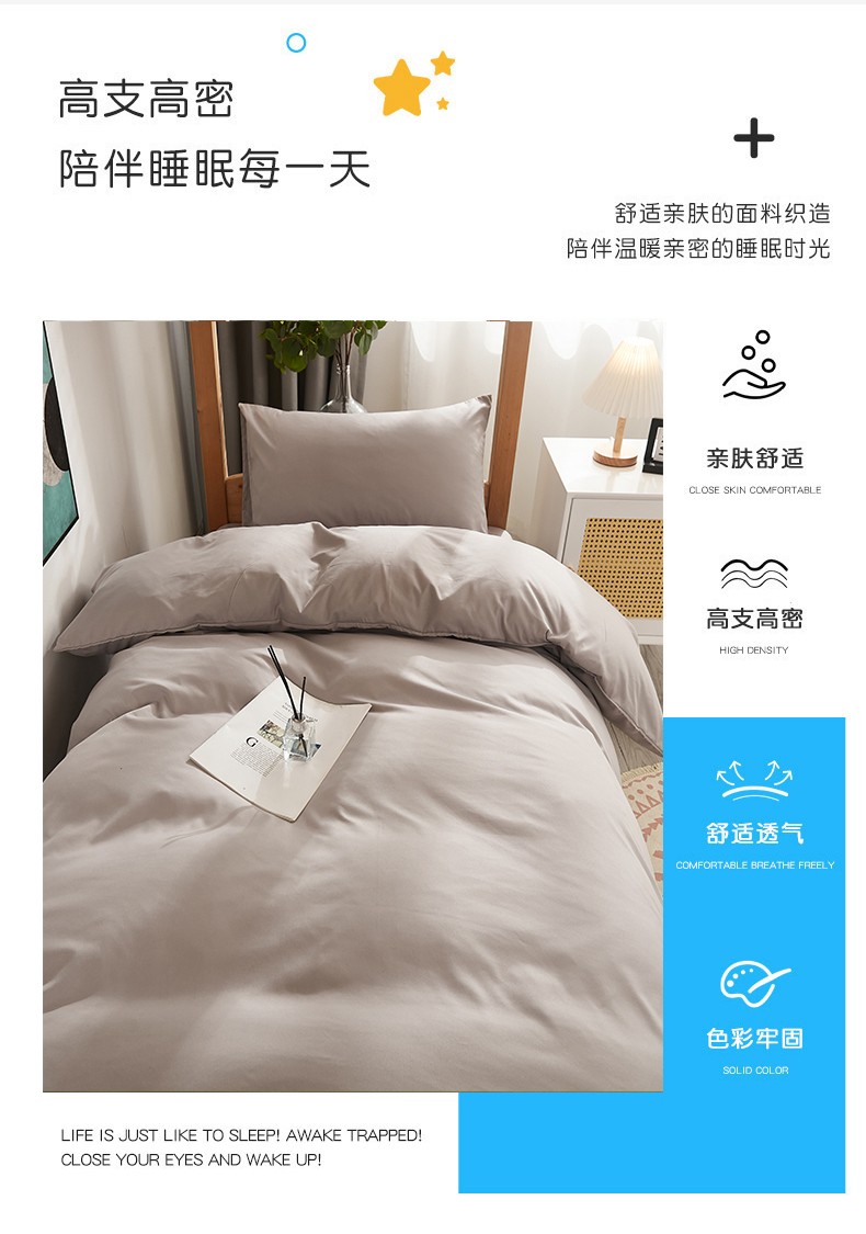 商品名称:啊雅家居 新款ins学生宿舍双拼纯色磨毛三件套 浅灰