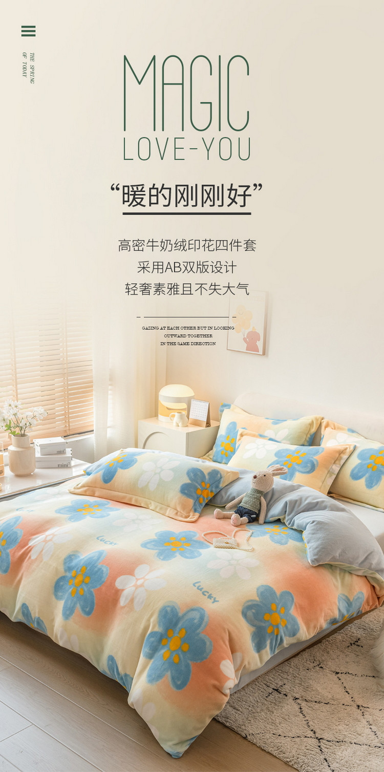 当前位置: 91家纺网 > 商品网购 > 床品套件 > 四件套 > 牛奶绒四件套 > 丝羽坊2022专版花型直播供货双面牛奶绒印花四件套被套 新图二繁花似锦