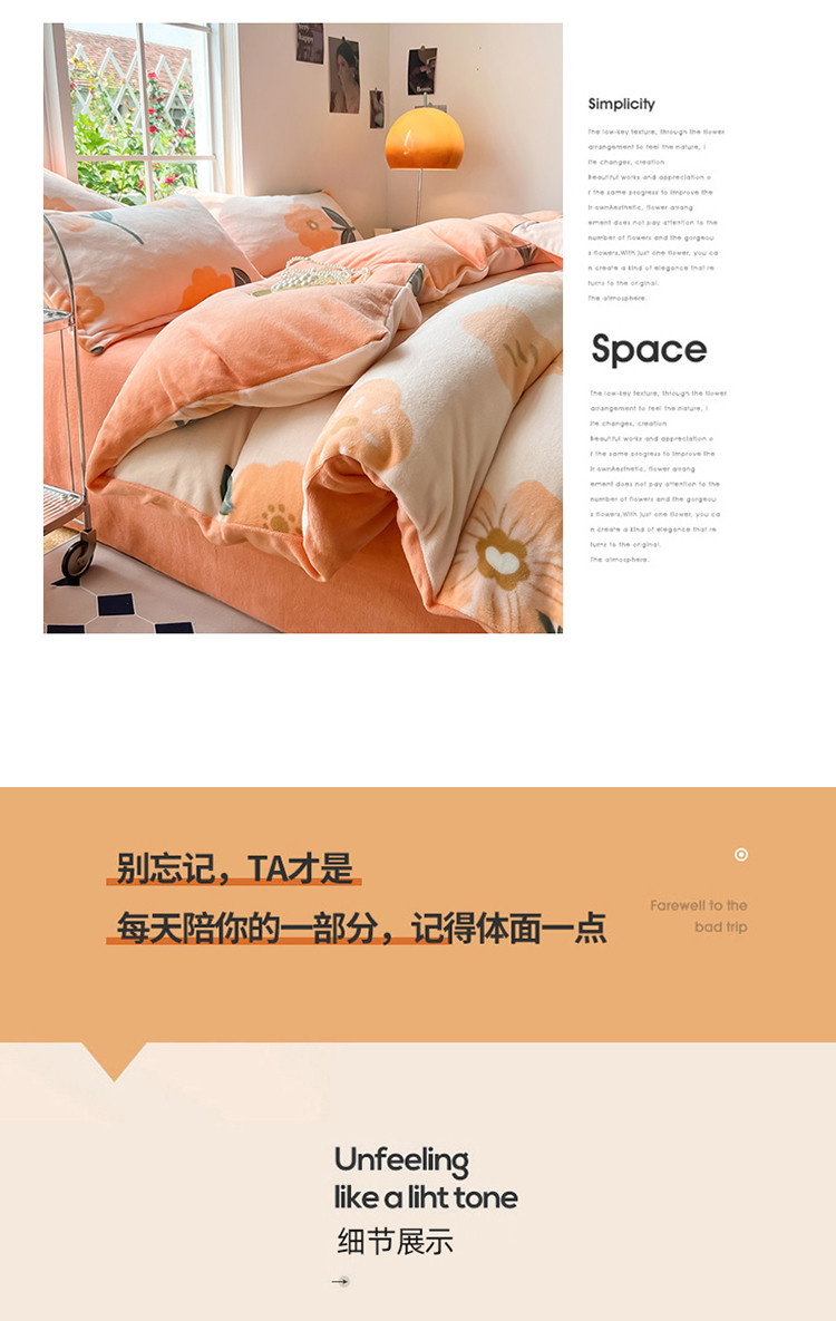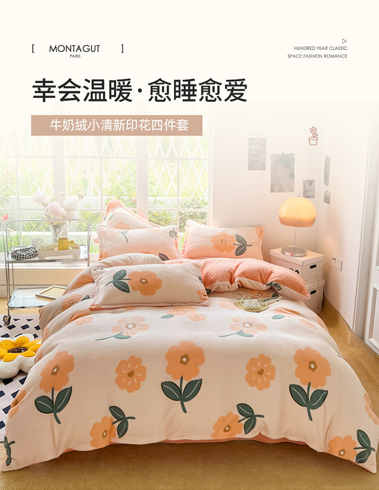 当前位置: 91家纺网 > 商品网购 > 床品套件 > 四件套 > 牛奶绒四件套 > 米莱 2022新款牛奶绒小清新印花四件套 花语