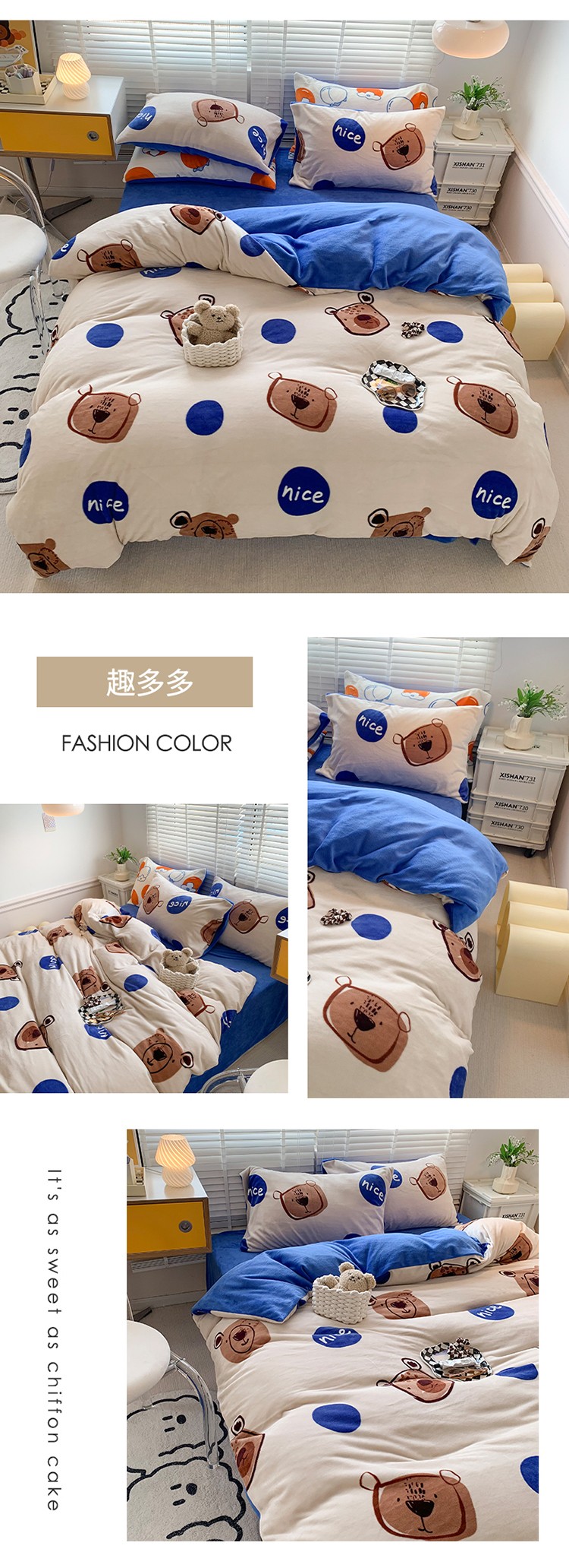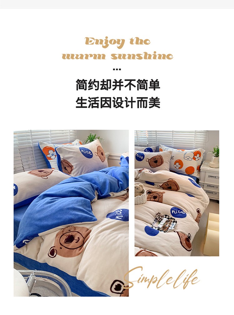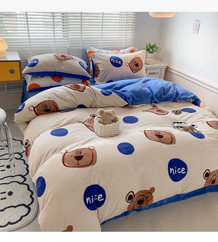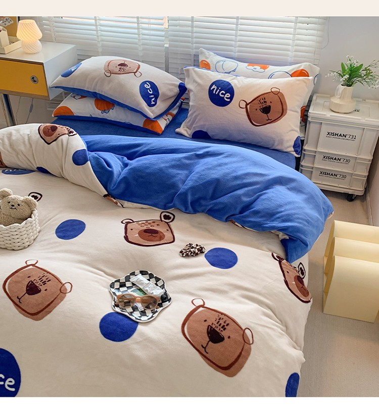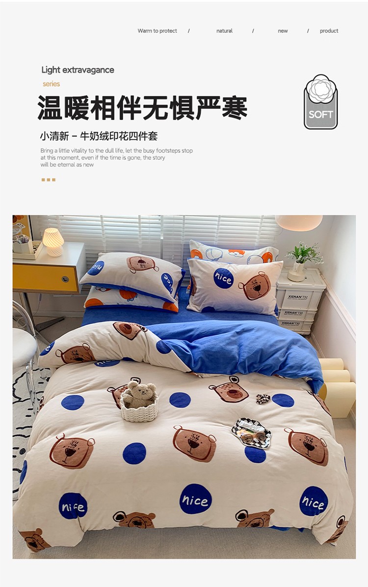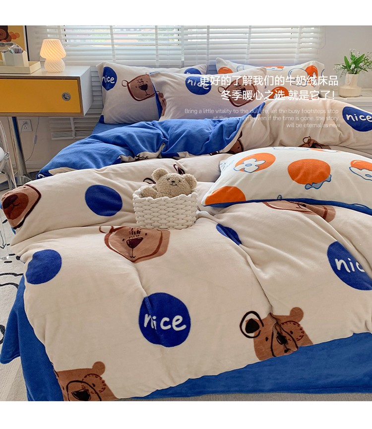 商品名称:澳萝拉 2022新款牛奶绒印花四件套 趣多多