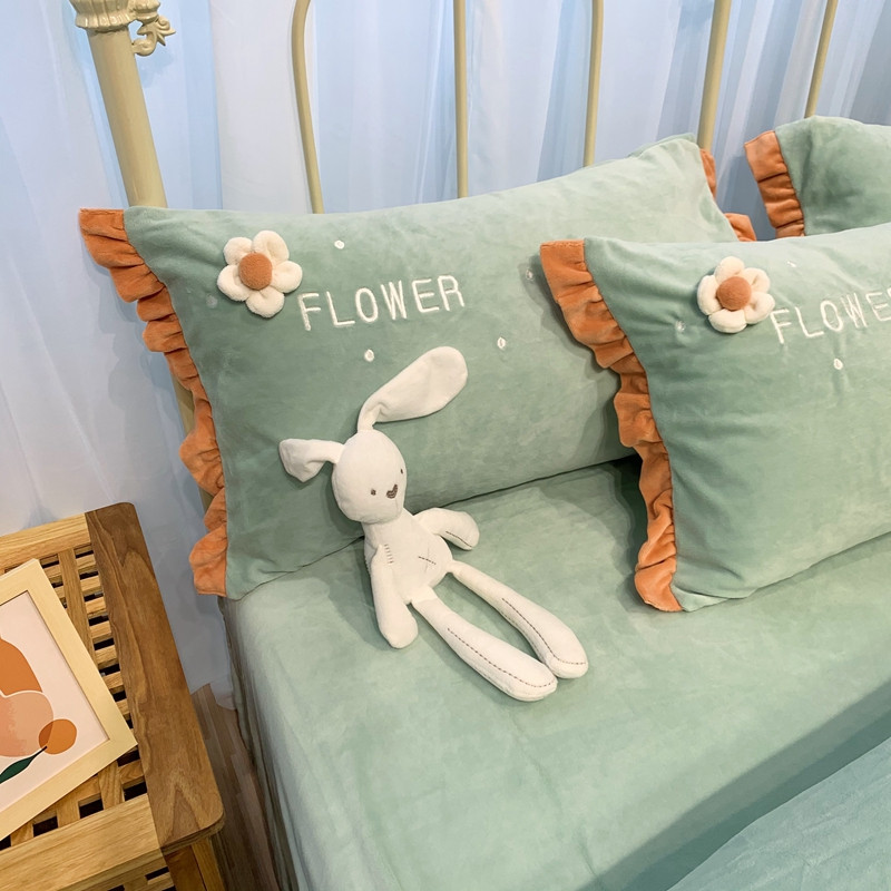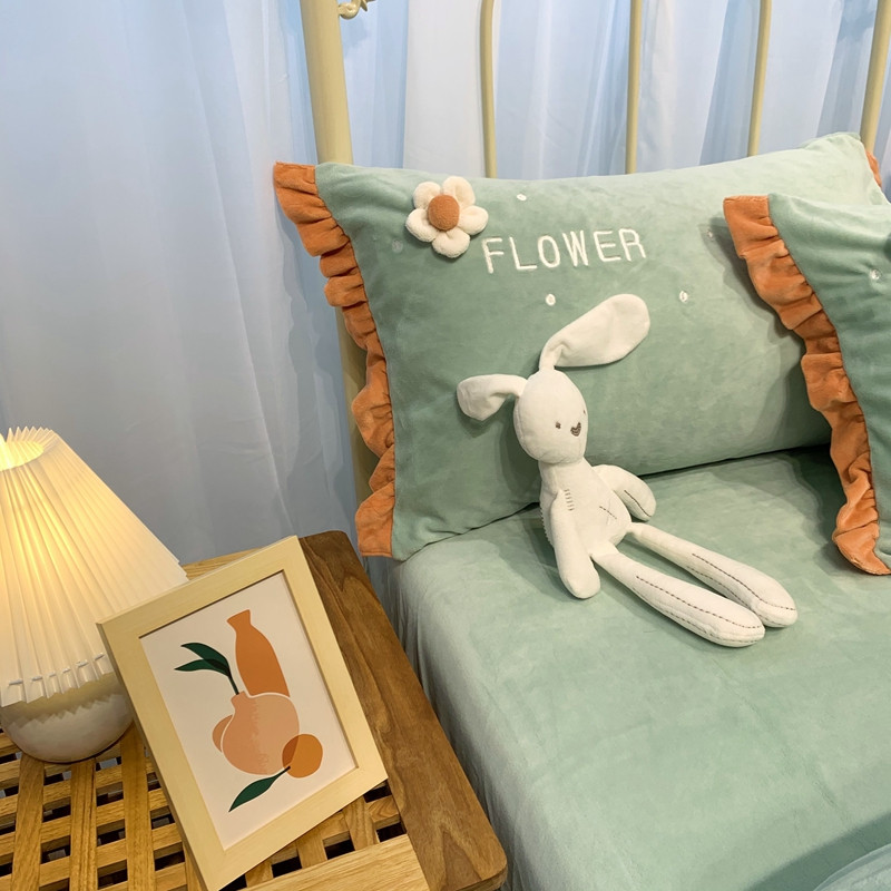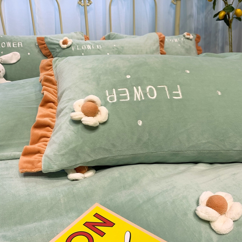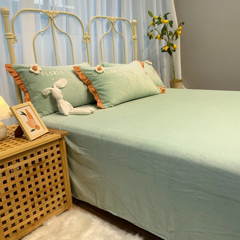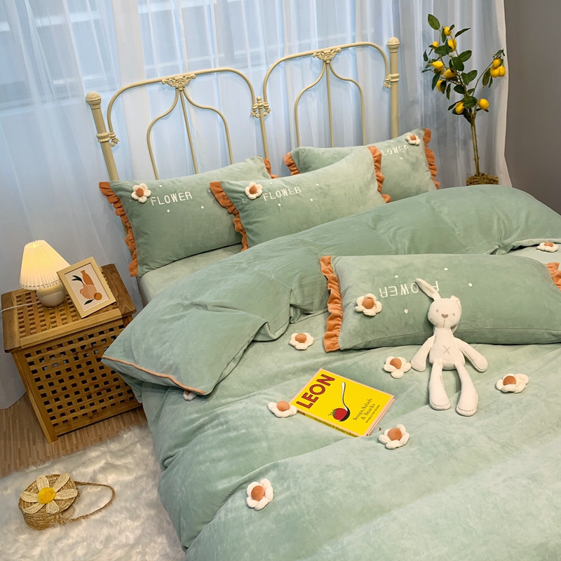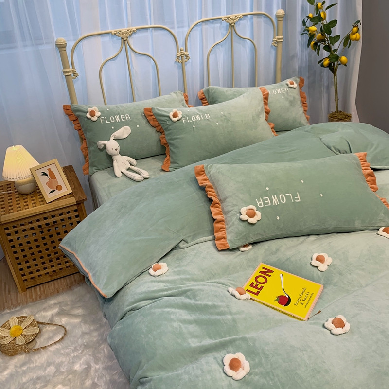 商品名称:馨蕊 2022新款秋冬轻奢煦暖绒那时花开系列四件套 那时花开-浅绿