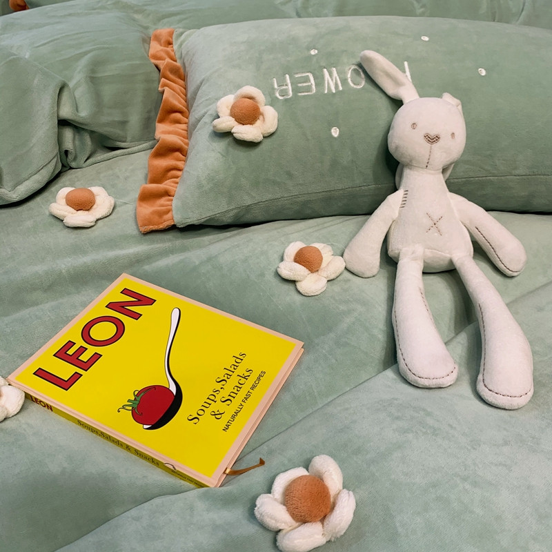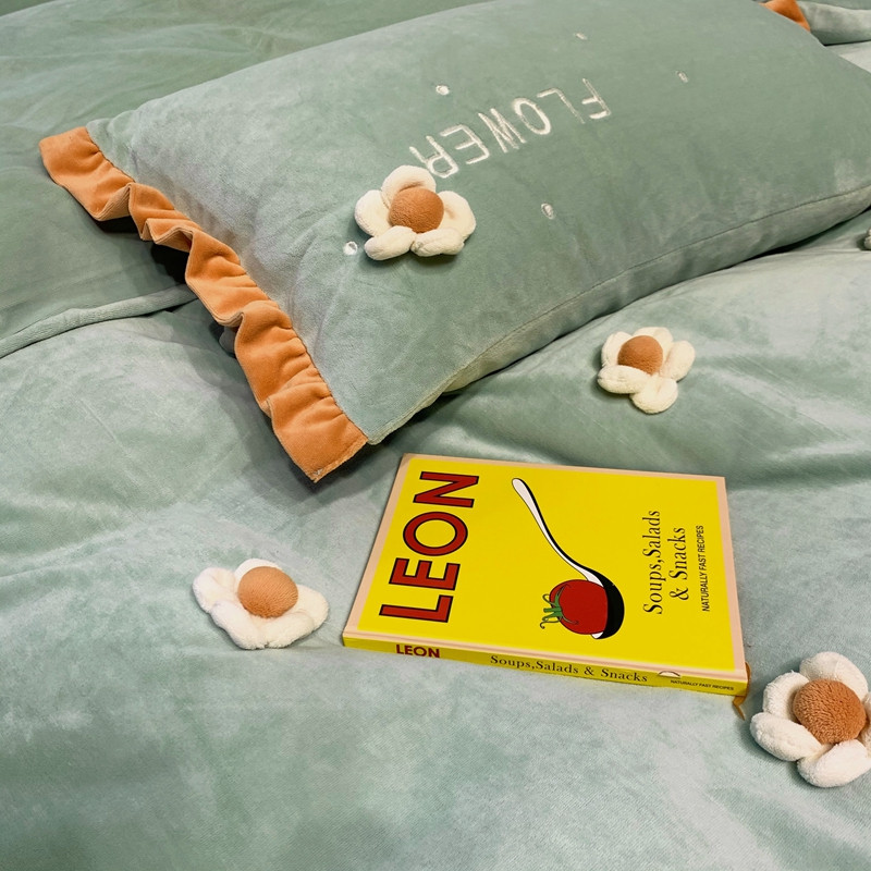 馨蕊 2022新款秋冬轻奢煦暖绒那时花开系列四件套 那时花开-浅绿