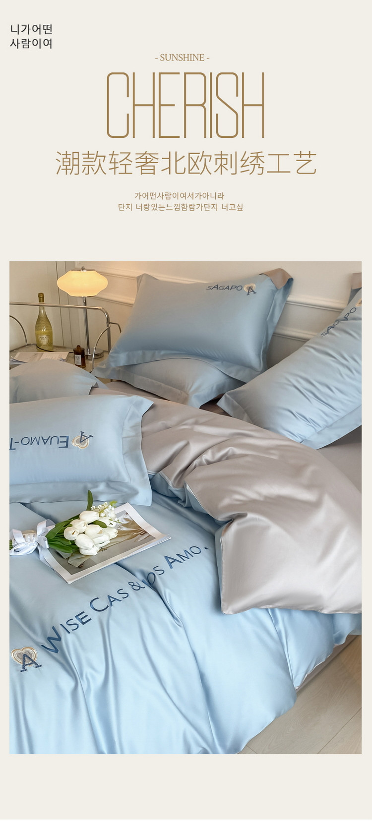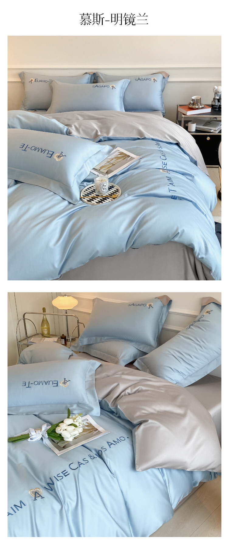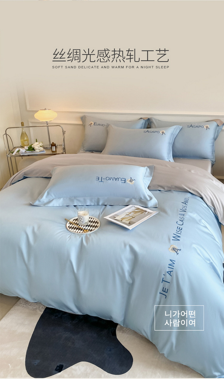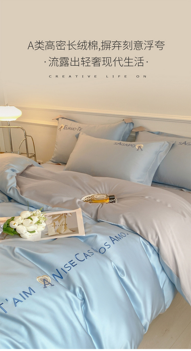 当前位置: 91家纺网 > 商品网购 > 床品套件 > 四件套 > 长绒棉四件套 > 618家纺 2023新款100支长绒棉全棉纯棉刺绣四件套 慕斯-明镜兰