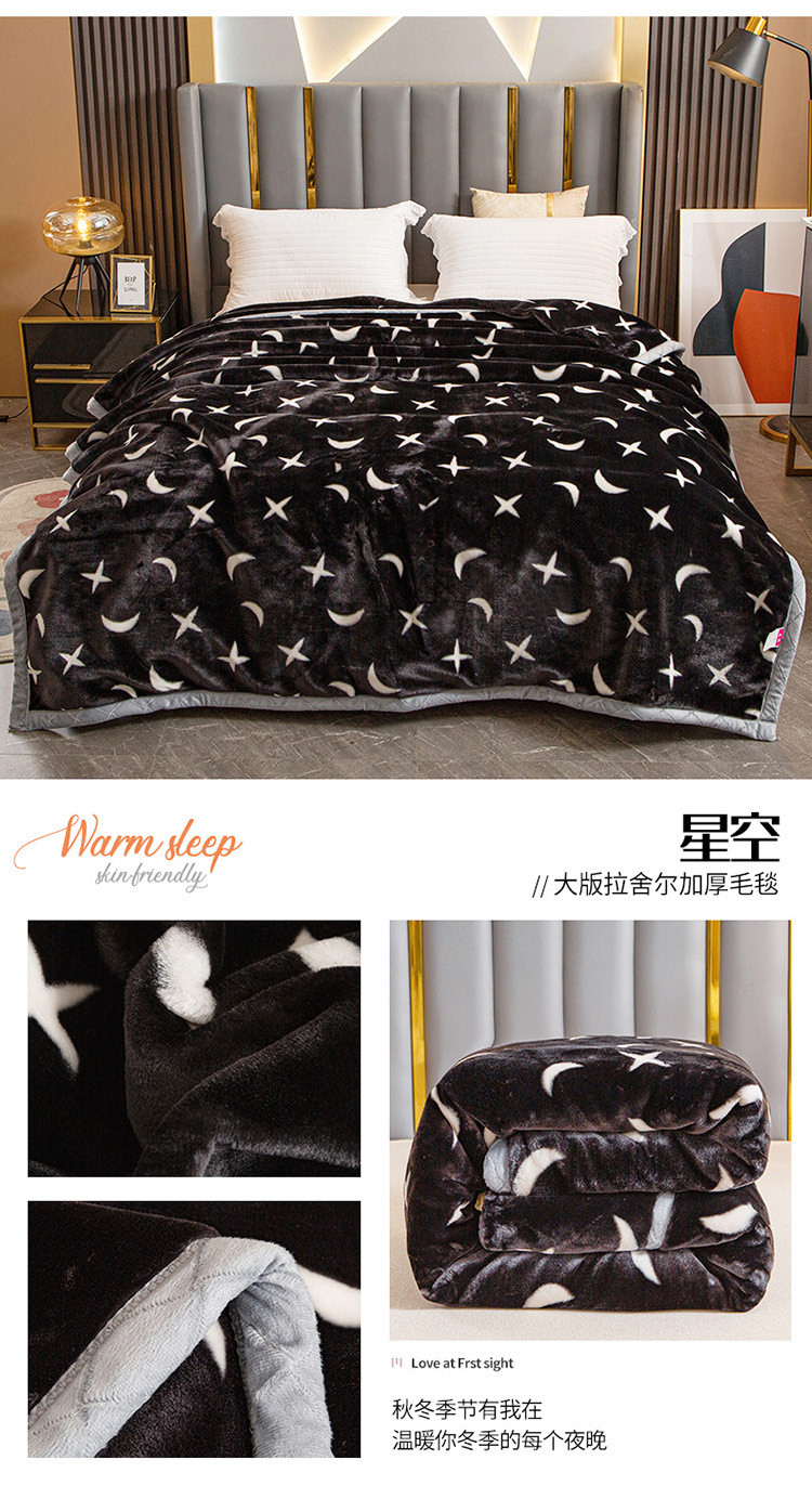 当前位置: 91家纺网 > 商品网购 > 毛毯休闲毯绒毯 > 拉舍尔毯 > 丹兰家纺 双层加厚拉舍尔毛毯冬季保暖毛毯被 新版-27星空