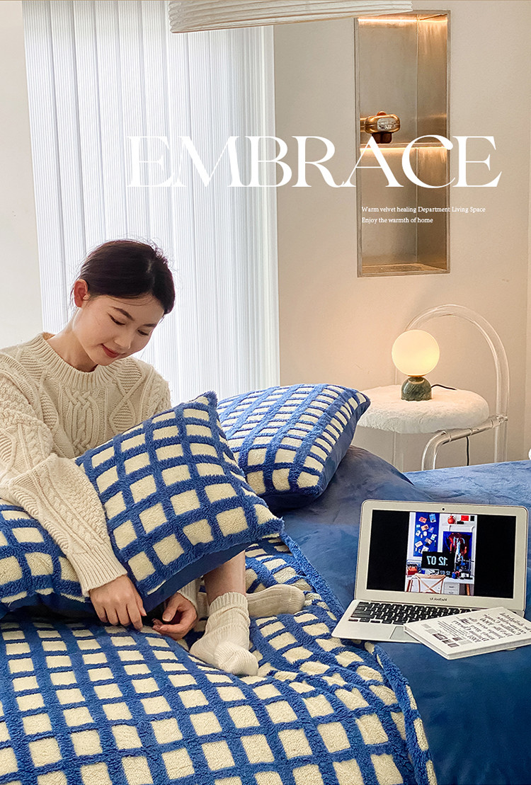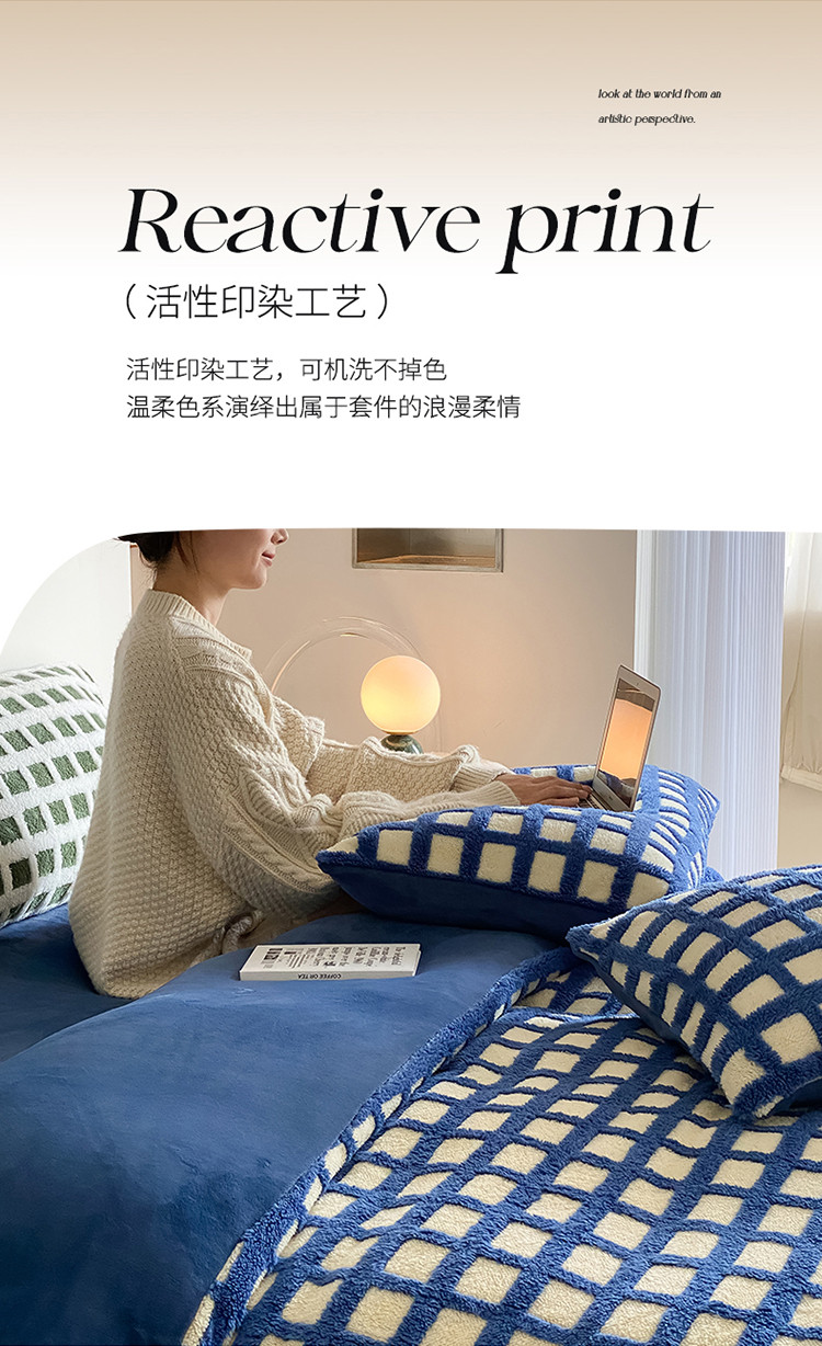 梦柏2022新款阳离子提花绒四件套 阳离子-克莱因蓝