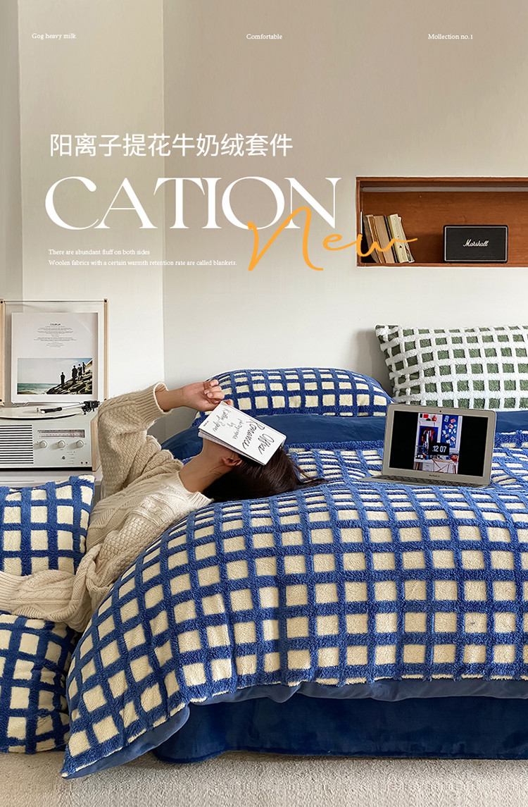 商品名称:梦柏2022新款阳离子提花绒四件套 阳离子-克莱因蓝