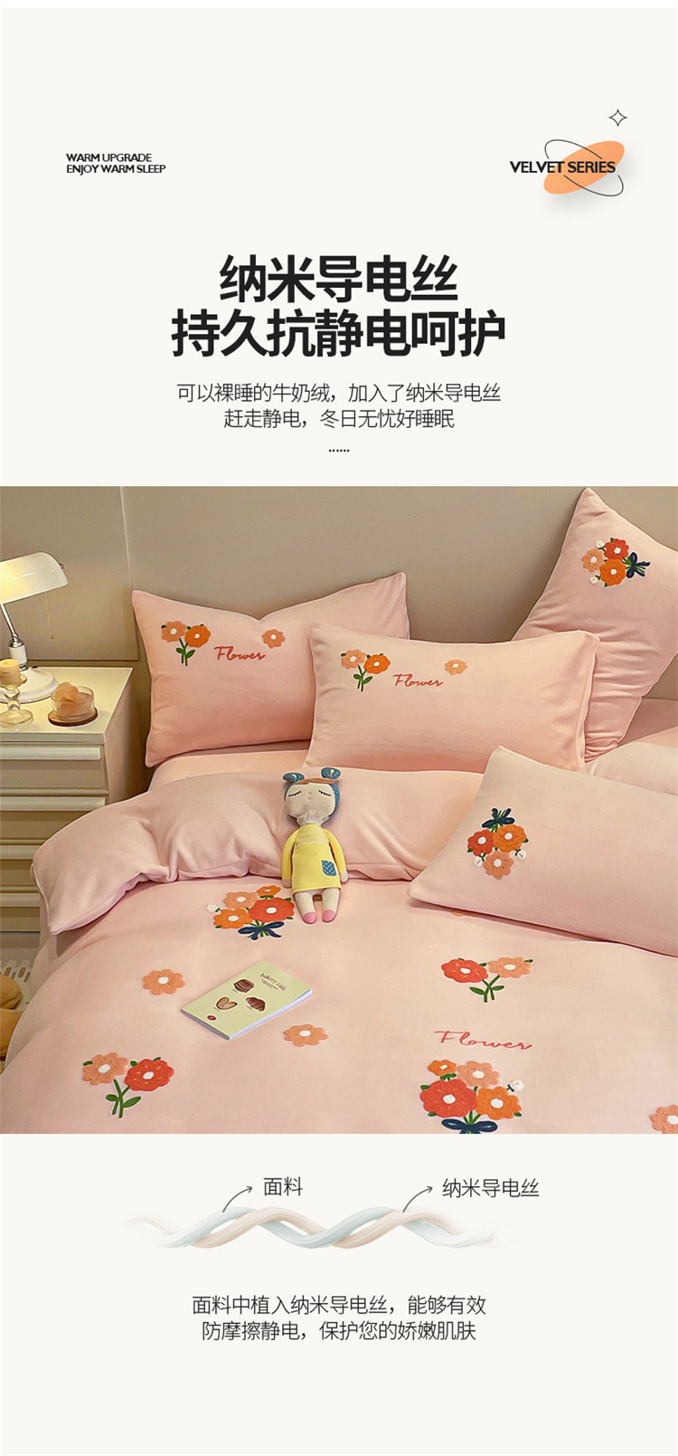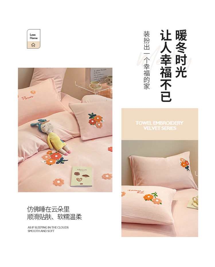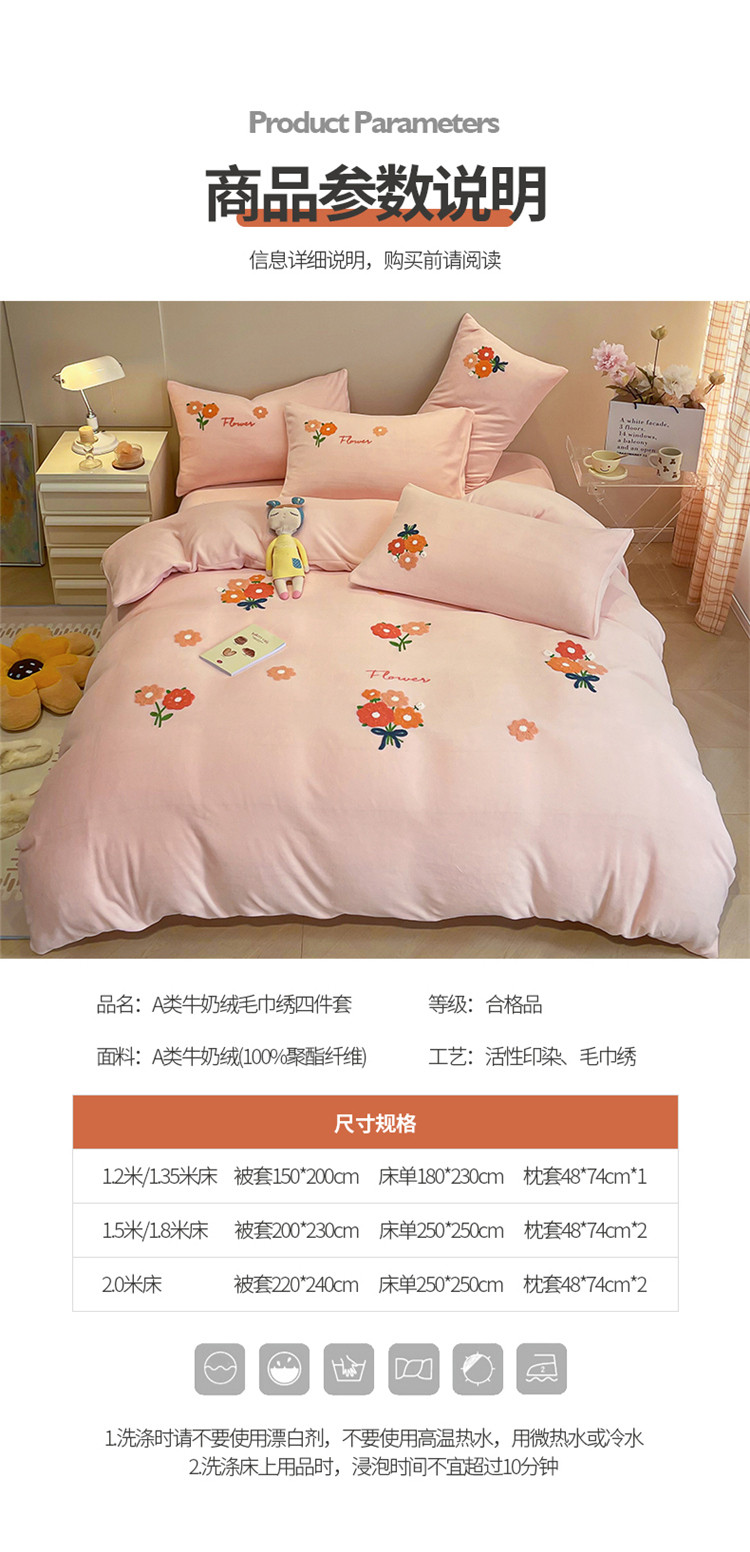 当前位置: 91家纺网 > 商品网购 > 床品套件 > 四件套 > 牛奶绒四件套 > 懒猫 2022新款牛奶绒毛巾绣四件套 手捧花