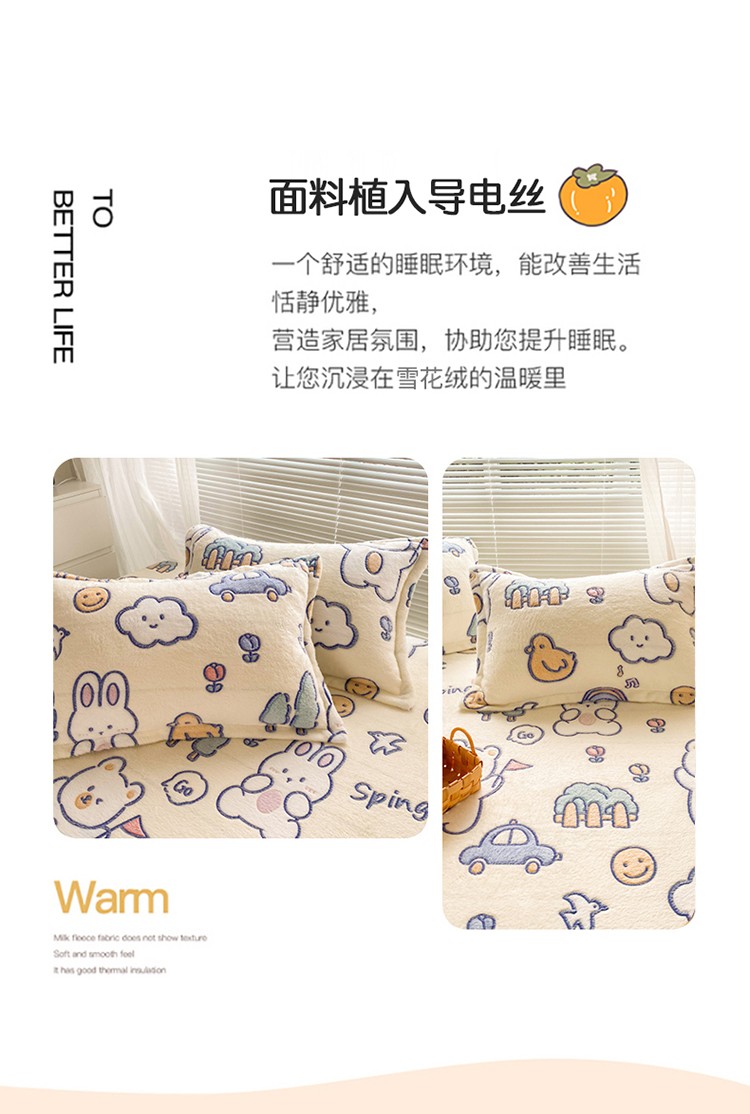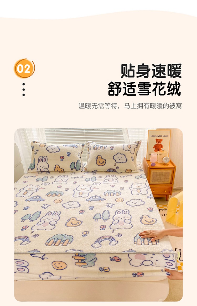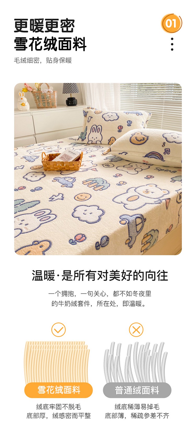 商品名称:慕尚 2022新款加厚保暖雪花绒床笠 动物巴士