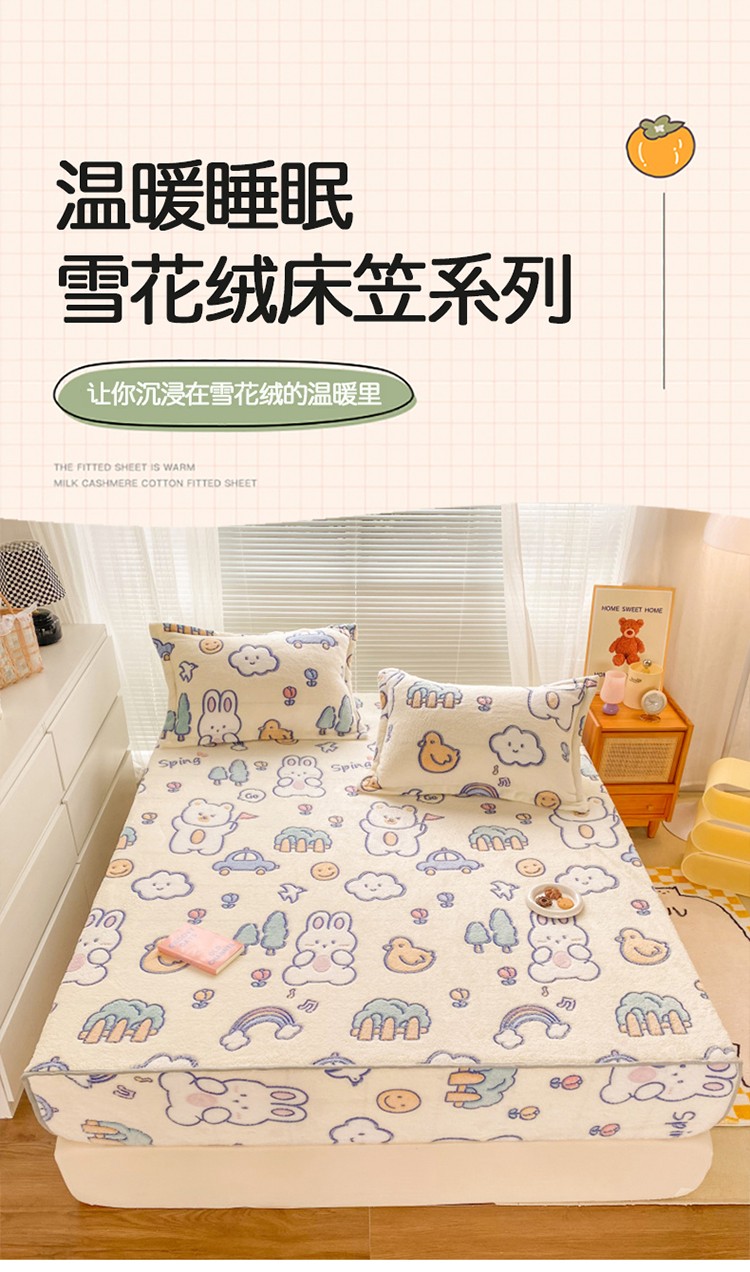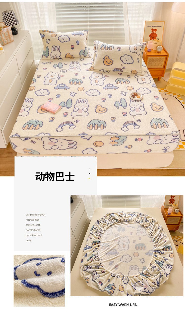 慕尚 2022新款加厚保暖雪花绒床笠 动物巴士