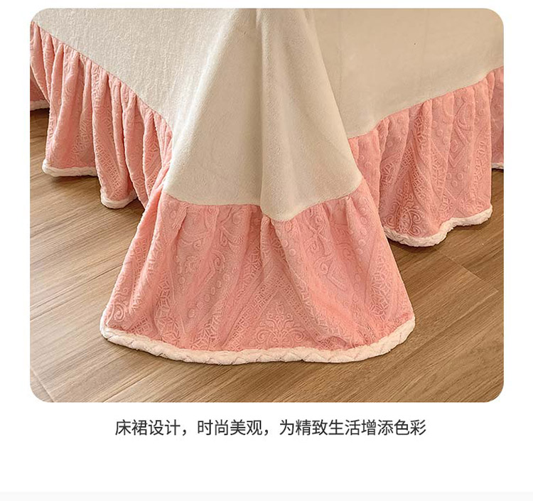 铠畅 2022新款A类烂花牛奶绒床裙四件套 法式浪漫粉玉