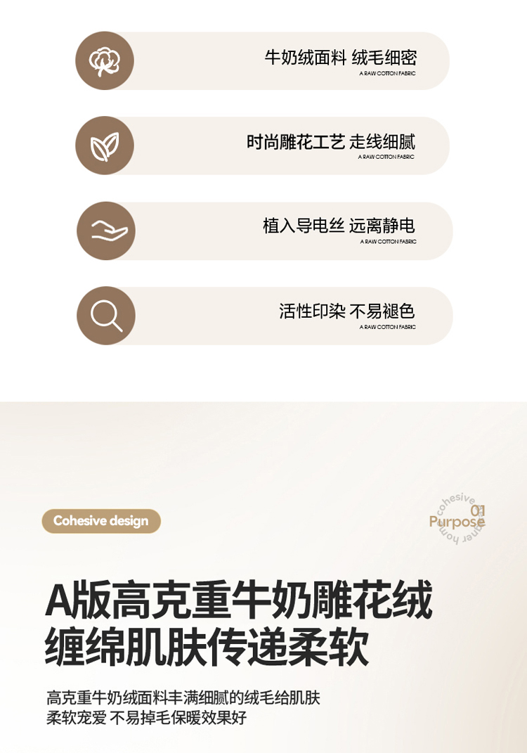 商品名称:怡家居2022新款雕花绒高克重牛奶绒四件套 温莎-乳白
