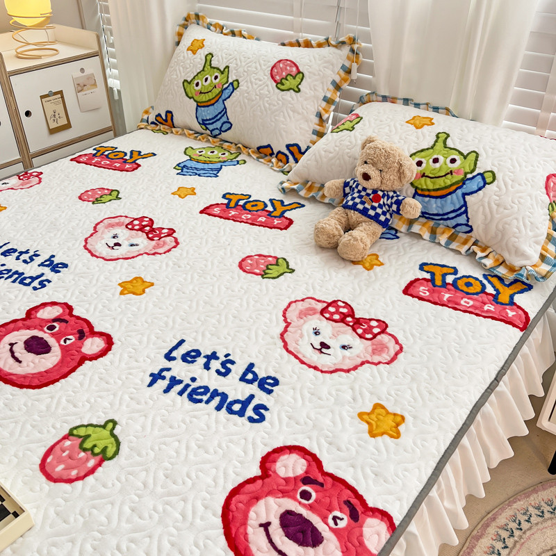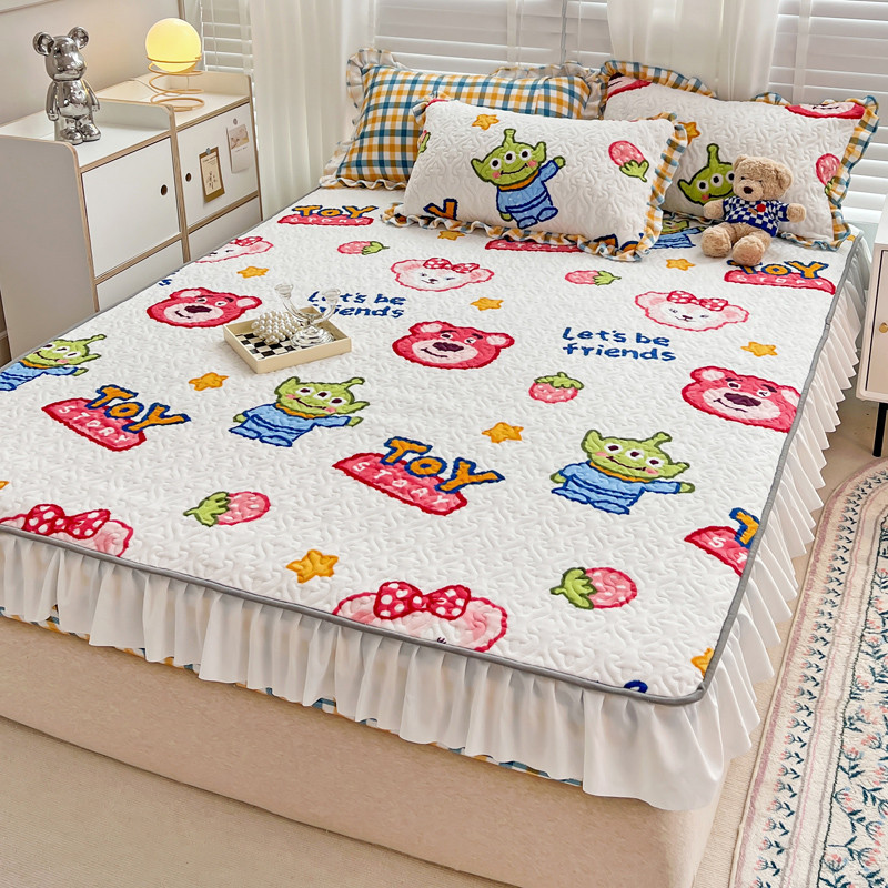 商品名称:金丝鸟 2022新款迪士尼系列夹棉绗缝牛奶绒花边床笠 外星人