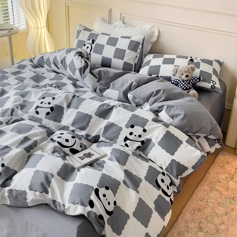 商品名称:金丝鸟家纺 2023新款舒适柔软双版全棉斜纹四季可用四件套 宝宝熊灰