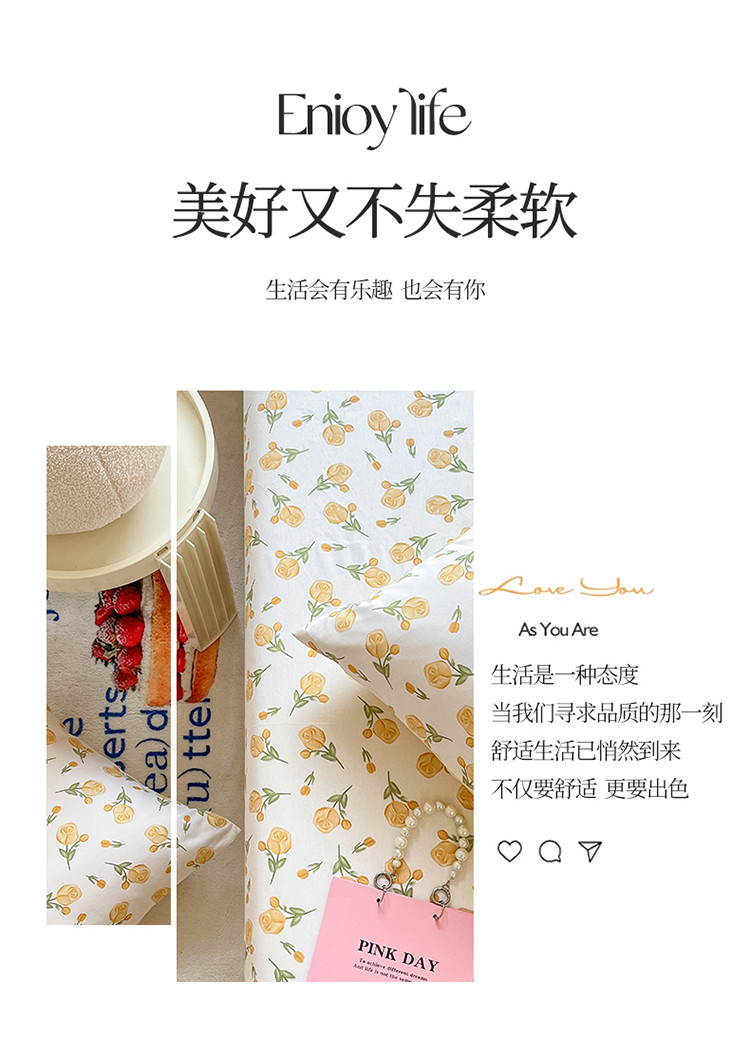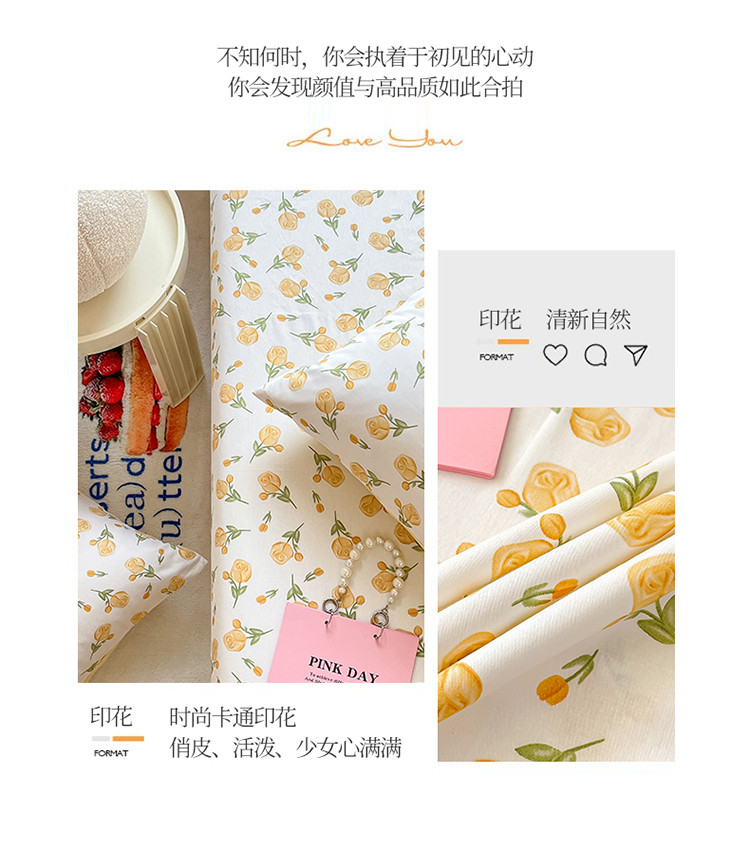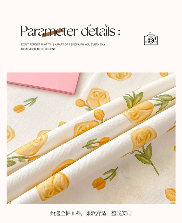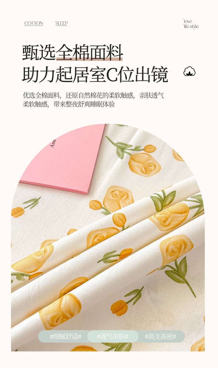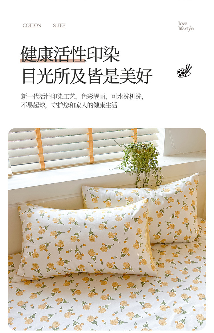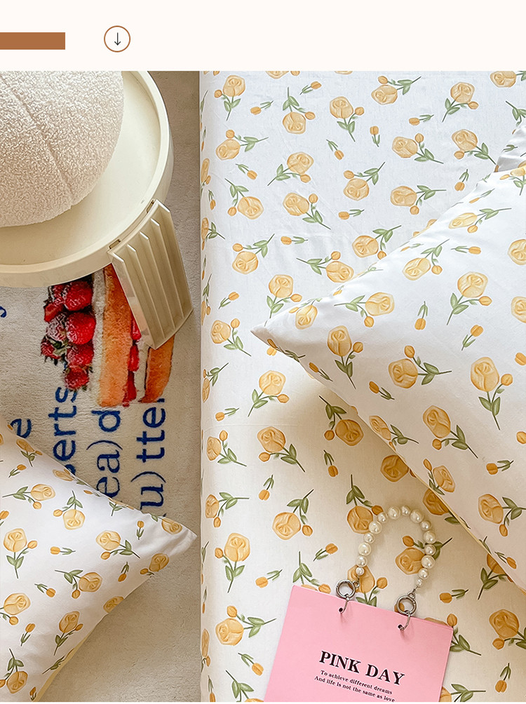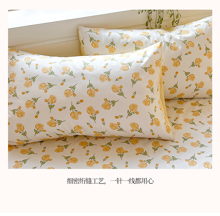 商品名称:2023新款全棉印花小清新系列-单枕套 黄玫瑰