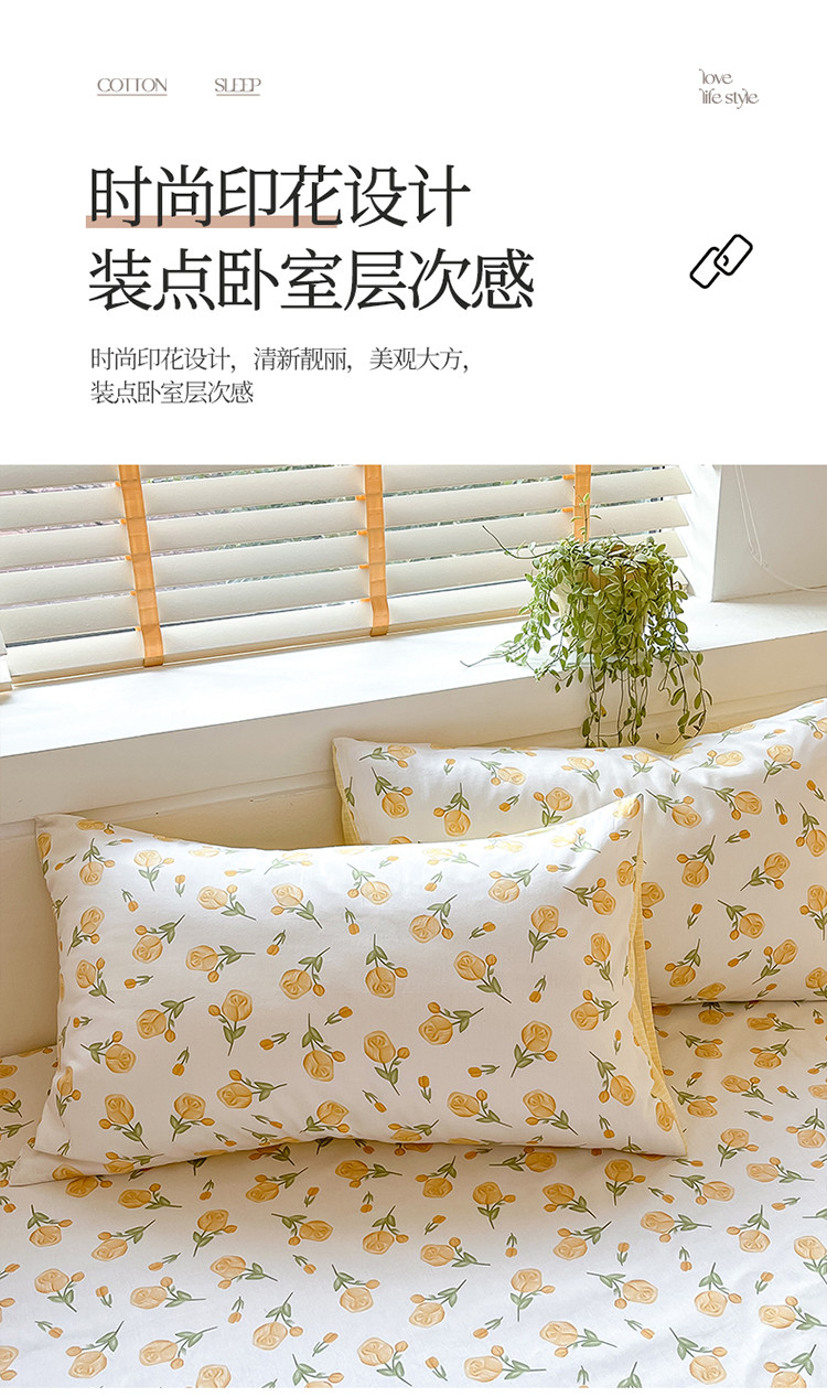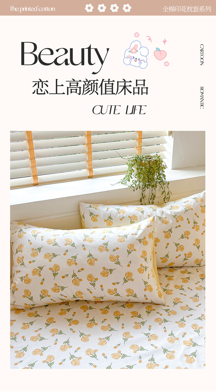 2023新款全棉印花小清新系列-单枕套 黄玫瑰