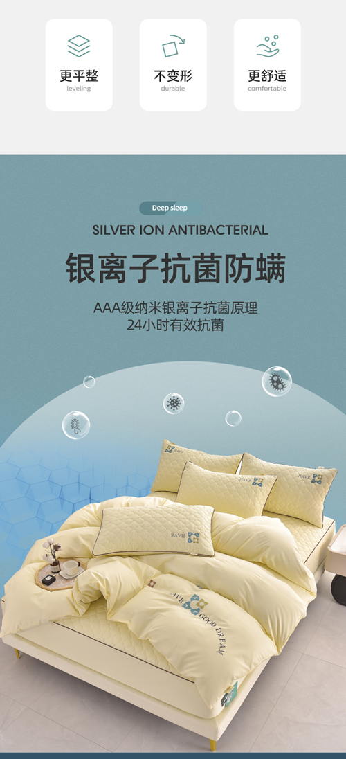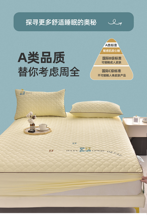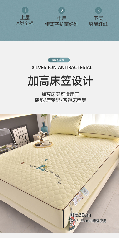 (总)好眠好梦家纺 2025新款全棉50S抗菌防螨夹棉防水床笠-无限之光系列,白色,粉色,卡其,深灰,天蓝,烟灰