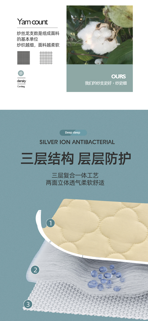 (总)好眠好梦家纺 2025新款全棉50S夹棉抗菌防螨床笠-棉生活系列,白色,粉色,卡其,深灰,天蓝,烟灰