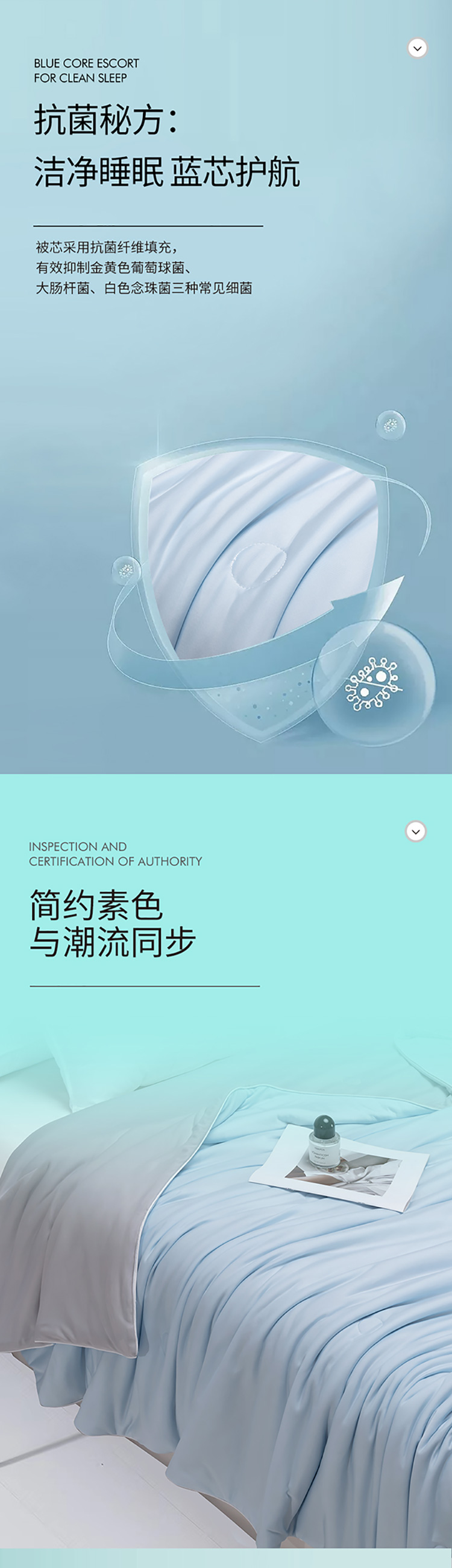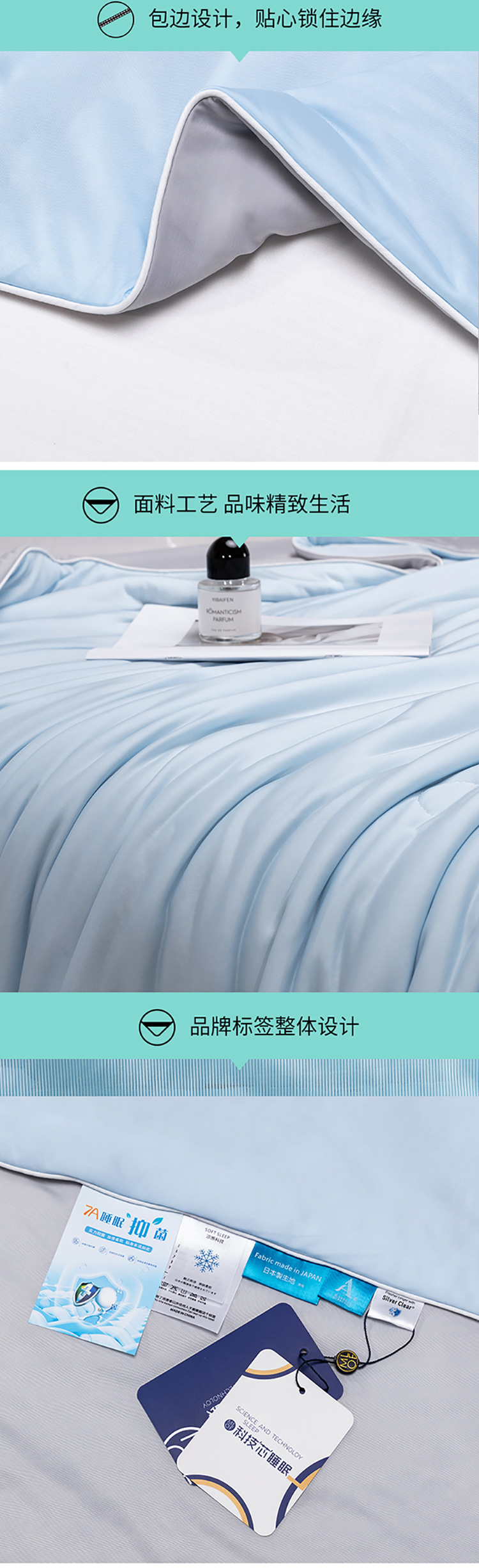 商品名称:若未家居 新款100%纯锦纶5A抗菌纤维填充凉皮冰激凌凉感夏被 银河蓝