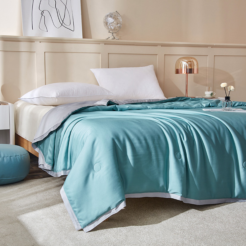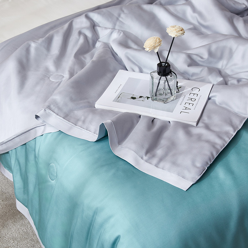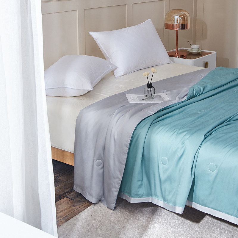 商品名称:华盛 2023新款春夏天丝夏凉被莫代尔天丝蚕丝夏被 天蓝拼浅灰