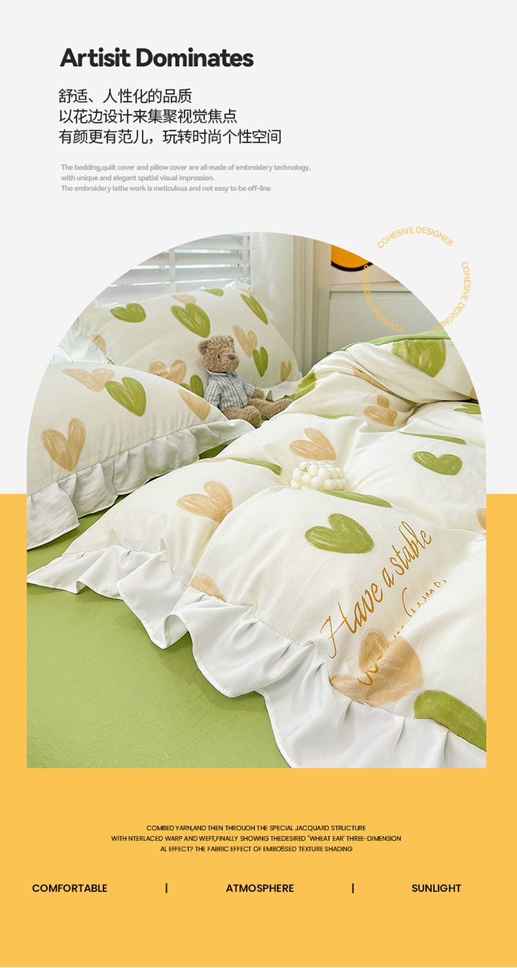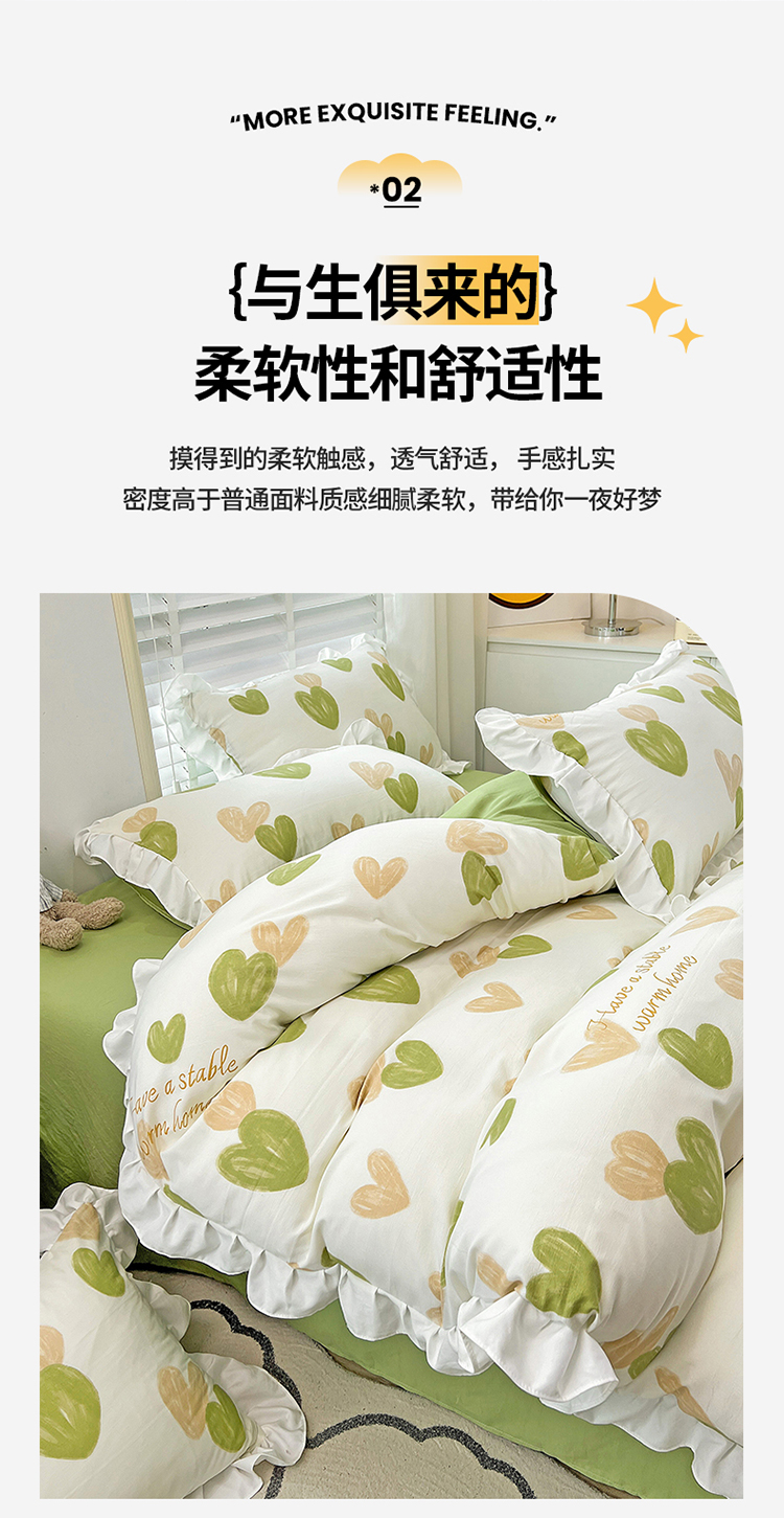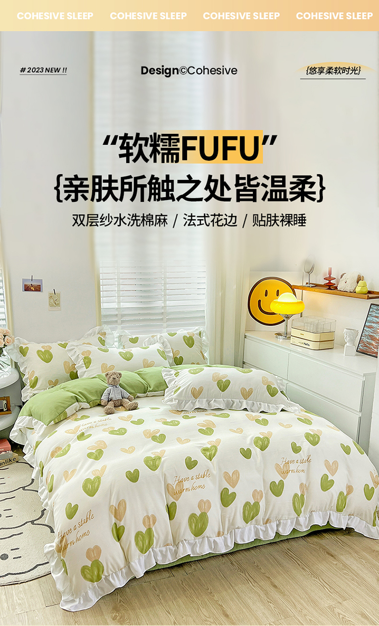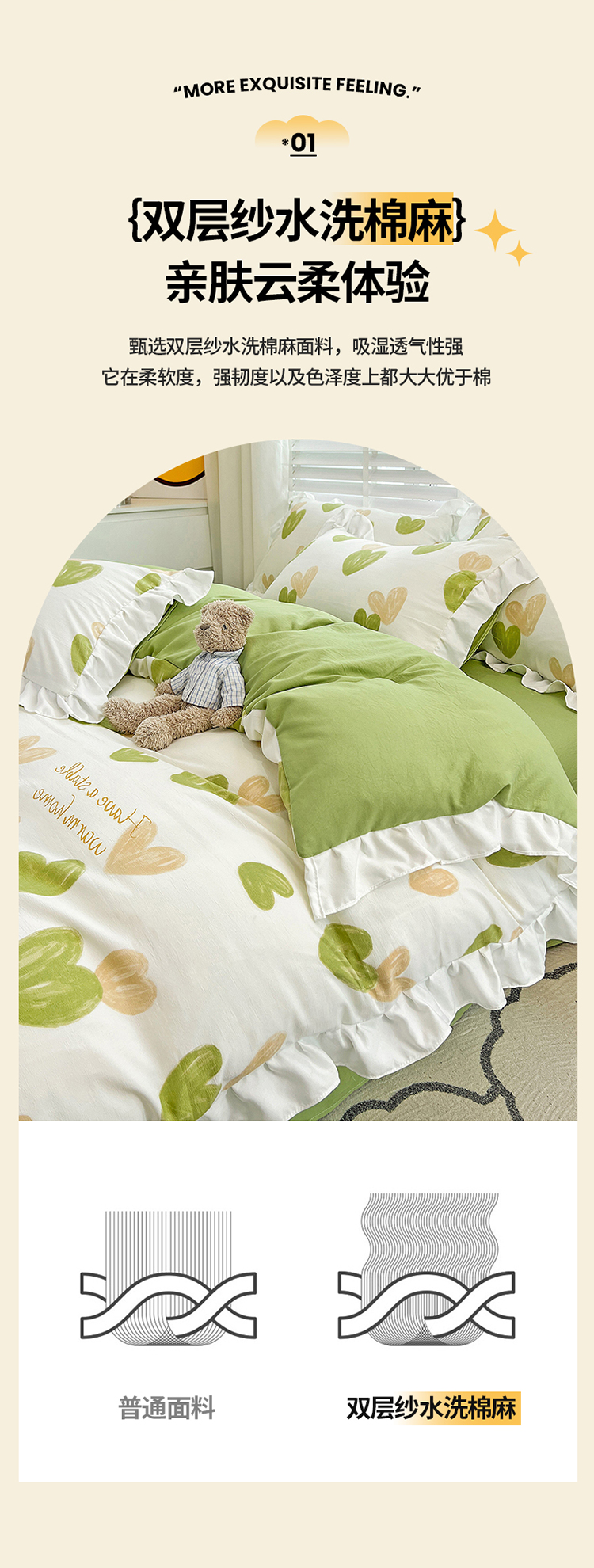 商品名称:澳梵 2023新款【怦然心动】系列-水洗棉麻双层纱四件套 怦然心动