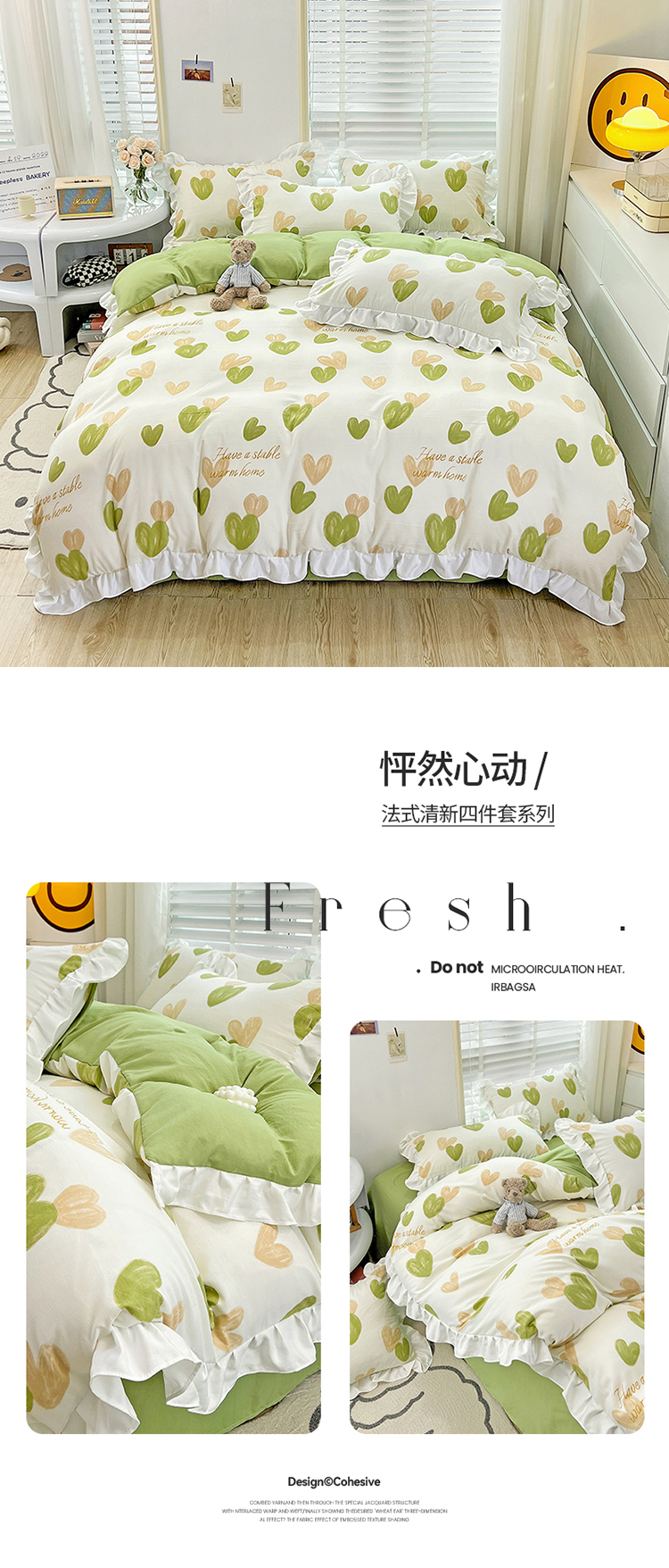 (总)澳梵家居 2025新款雕花牛奶绒韩版四件套-竹影柔柔,竹影柔柔,灰绿蝴蝶结,灰绿樱桃,卡其叶影,绿色叶影,漫调花语-粉,漫调花语-绿,玫瑰蝶语-蓝,玫瑰蝶语-绿,奶芙蝴蝶结,糖霜玫瑰-卡其