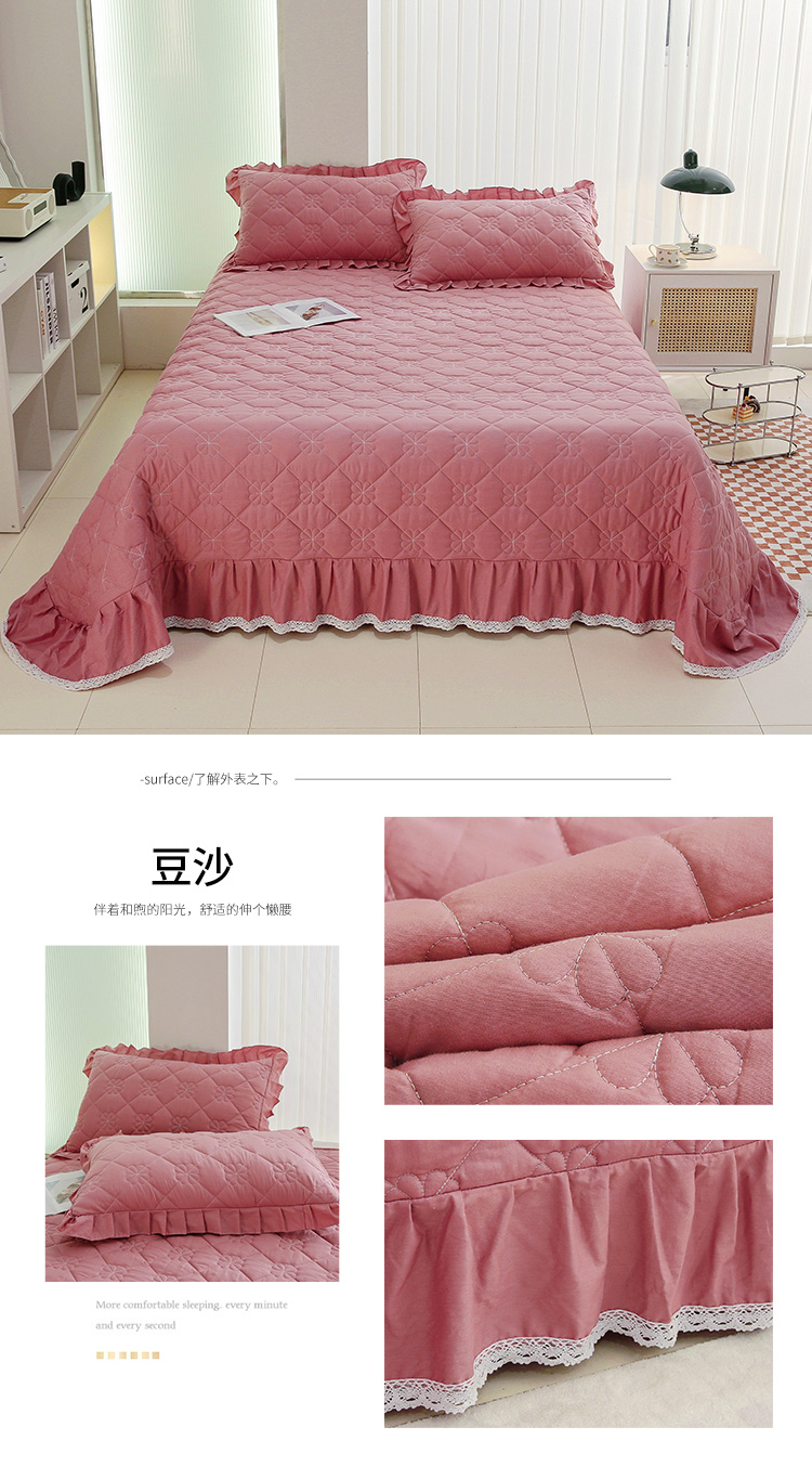 • 91家纺网 家纺一手货源 找家纺 情煊家纺 2023新款全棉夹棉纯色床盖三件套(可定制尺寸) 豆沙
