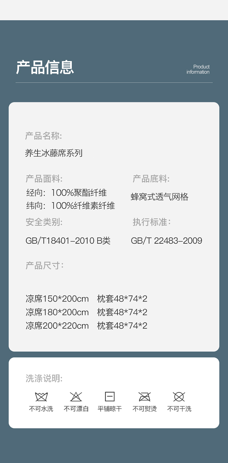 商品名称:宅部落 2023年四叶草系列养生冰藤席 冰川青