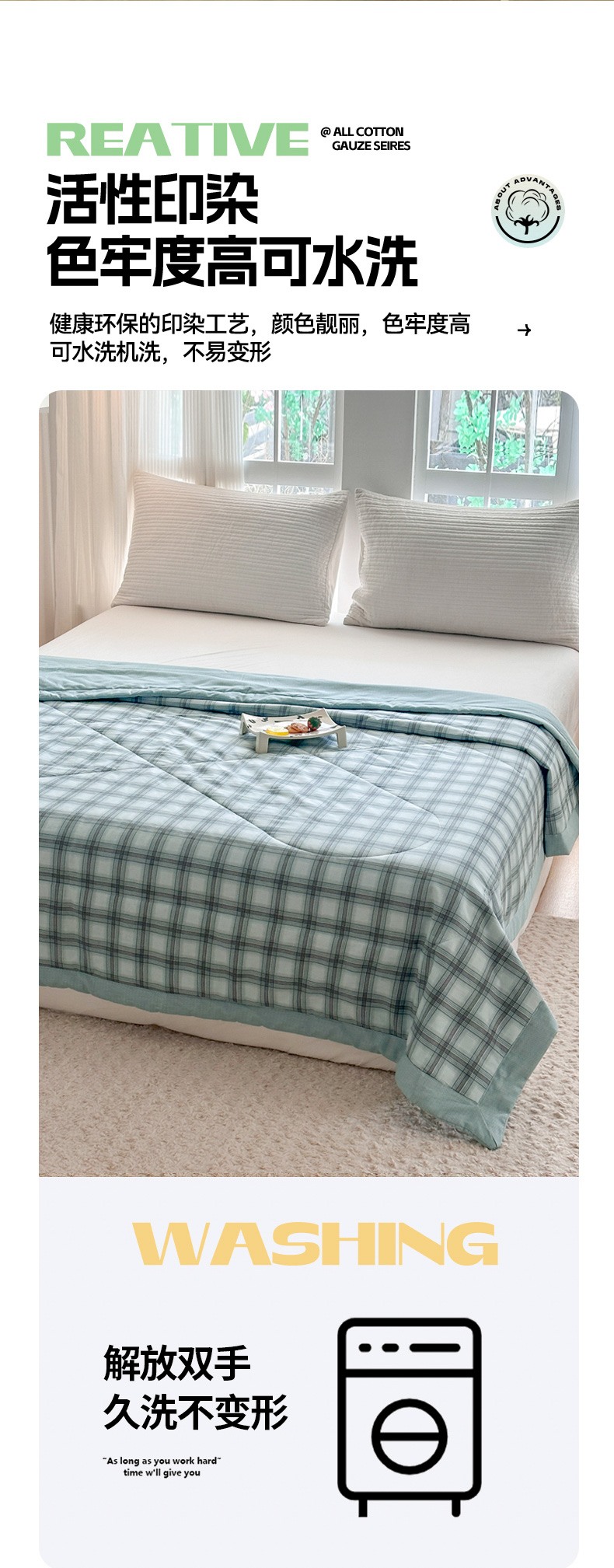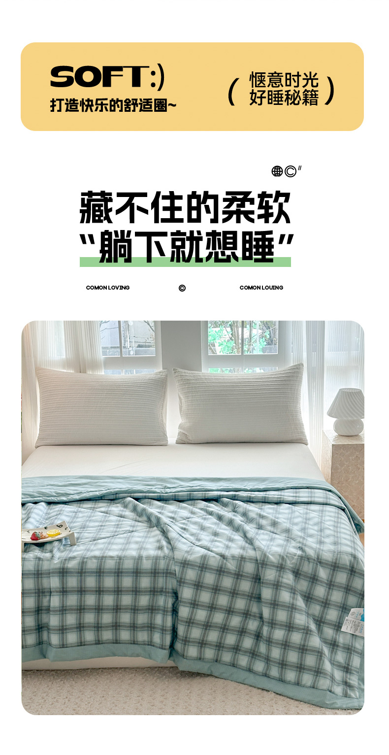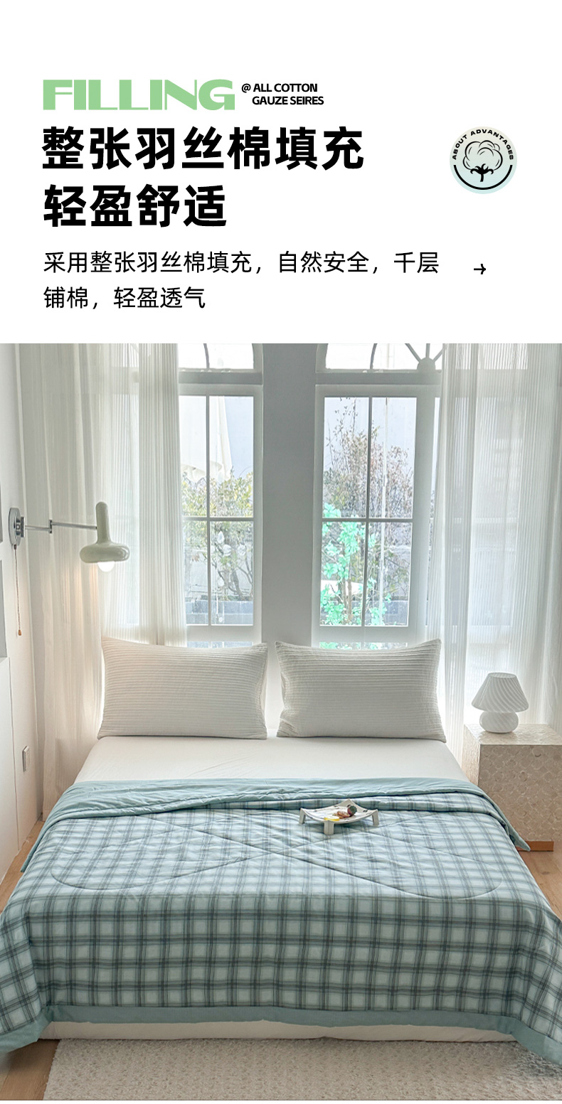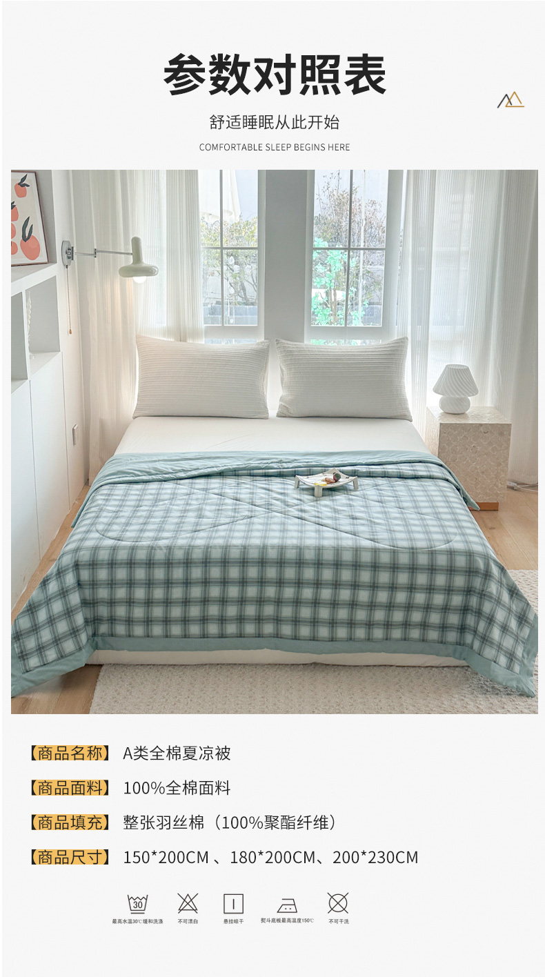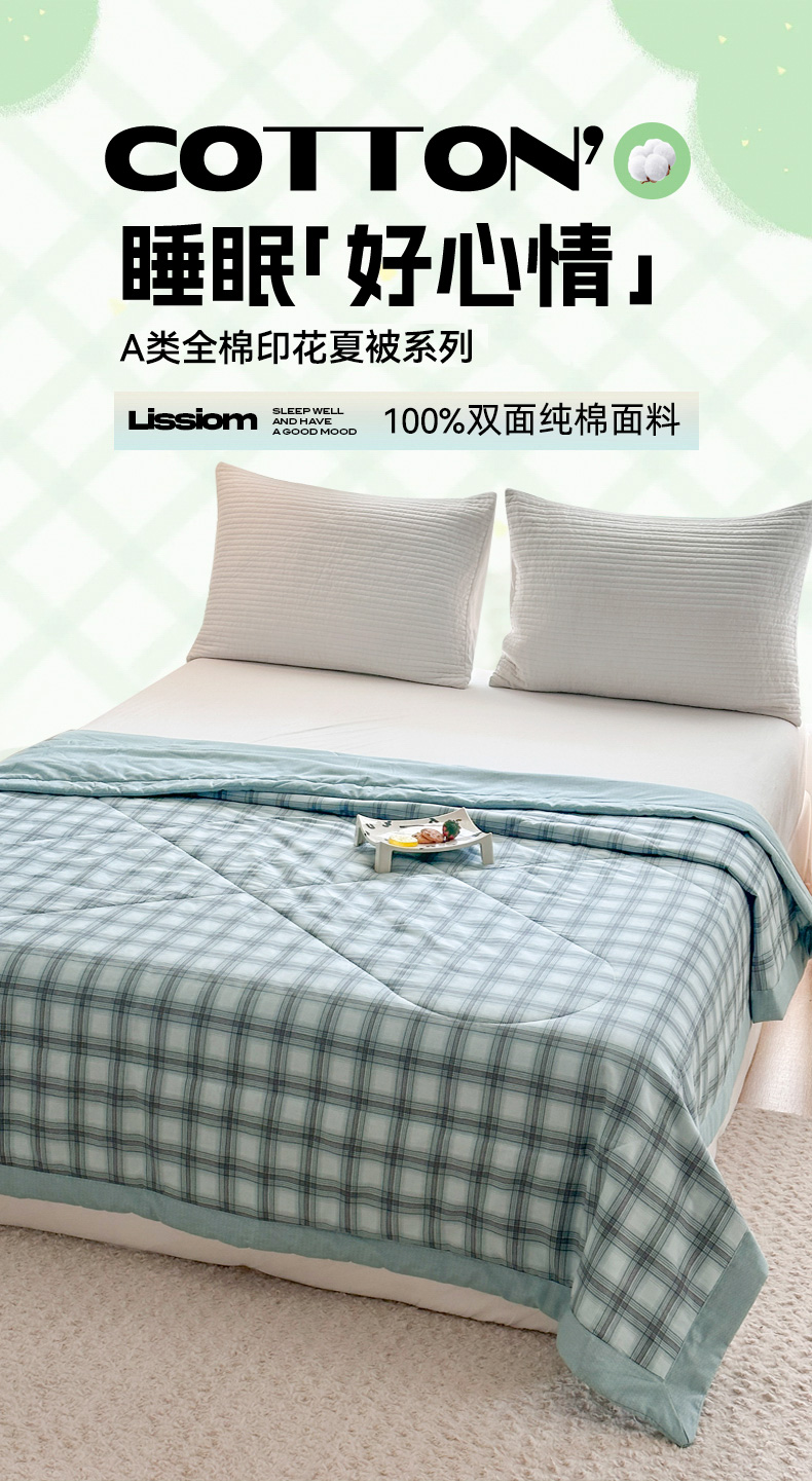 瑜珠家纺 2025新款里外全棉棉花夏被 青柠薄荷,青柠薄荷