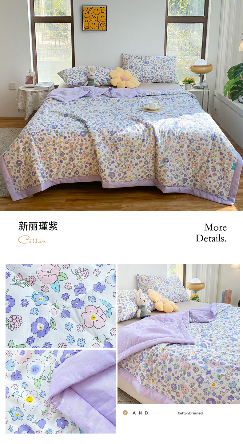 瑜珠 2025新款双面全棉印花夏被夏凉被空调被子 新丽瑾紫,新丽瑾紫