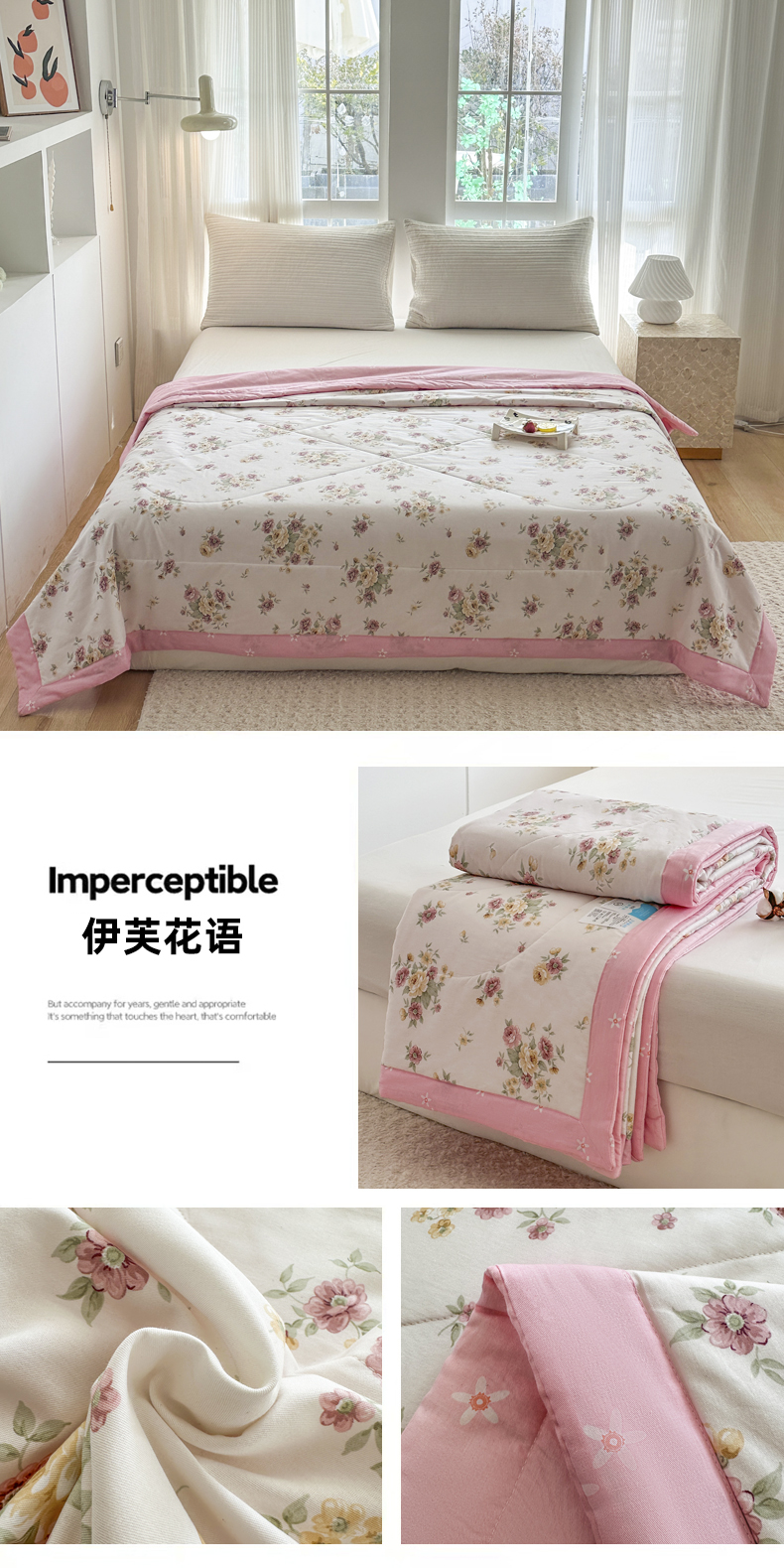 瑜珠家纺 2025新款里外全棉棉花夏被 法尔曼玫瑰,法尔曼玫瑰