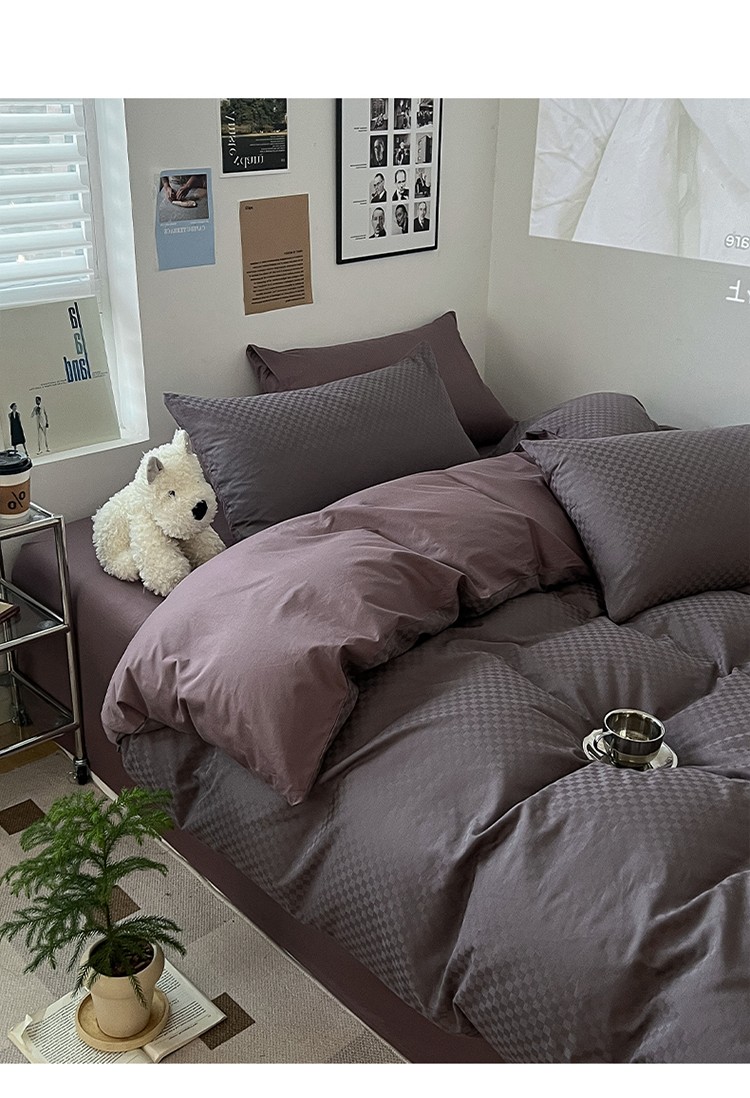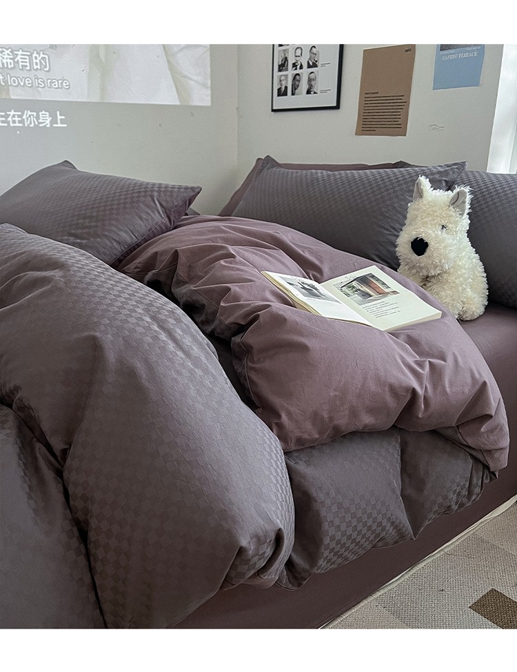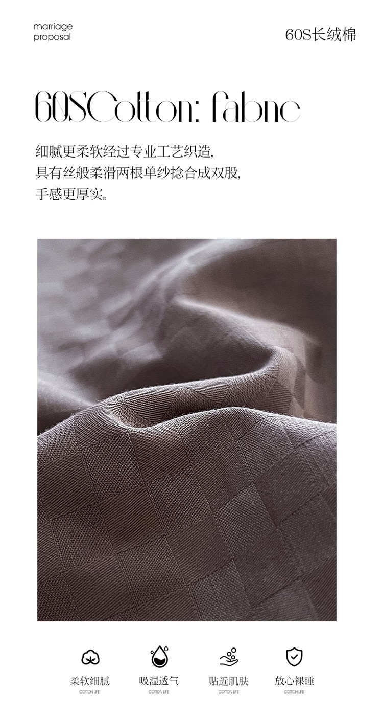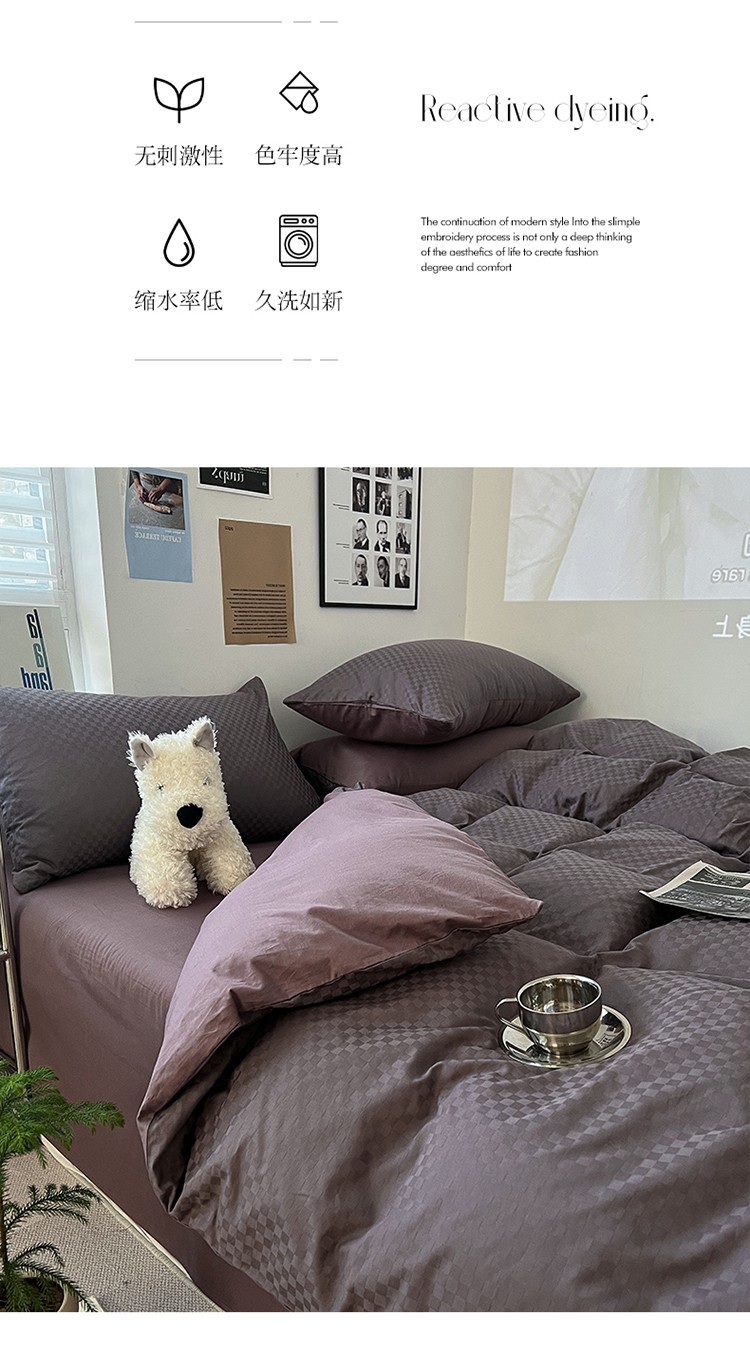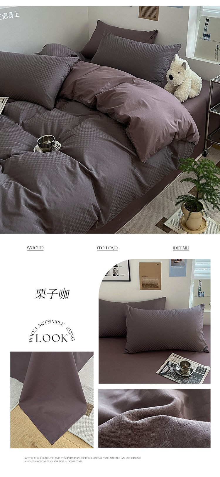 商品名称:三朵 2023新款提花混搭缎格DG系列四件套 栗子咖