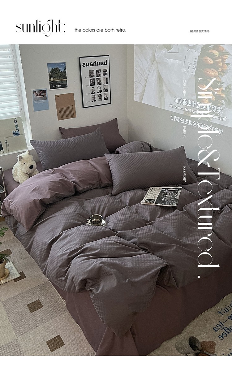 三朵 2023新款提花混搭缎格DG系列四件套 栗子咖
