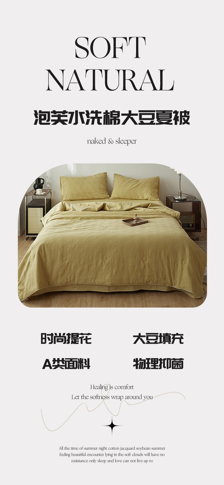 商品名称:莱福仕家纺2024新款泡芙水洗棉大豆夏被 缘缘-奶黄