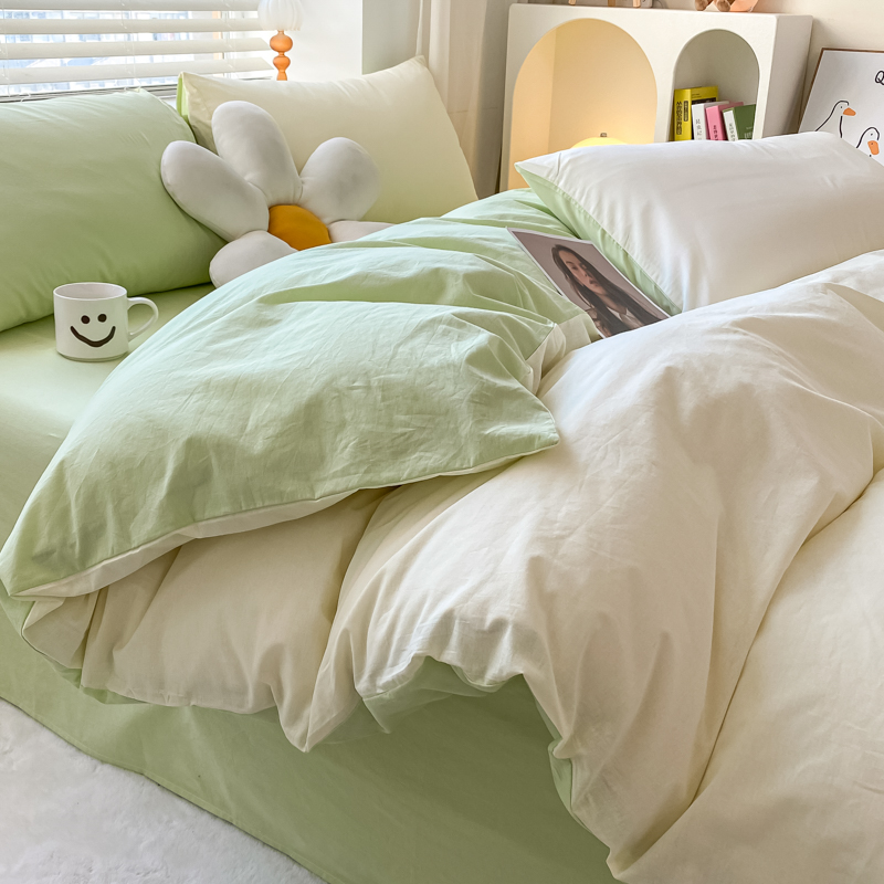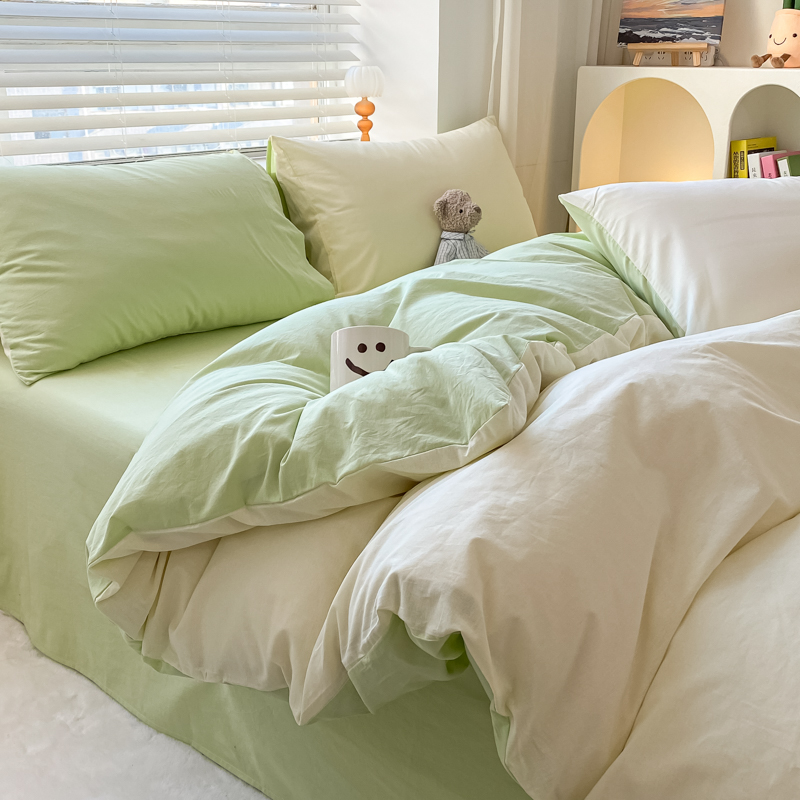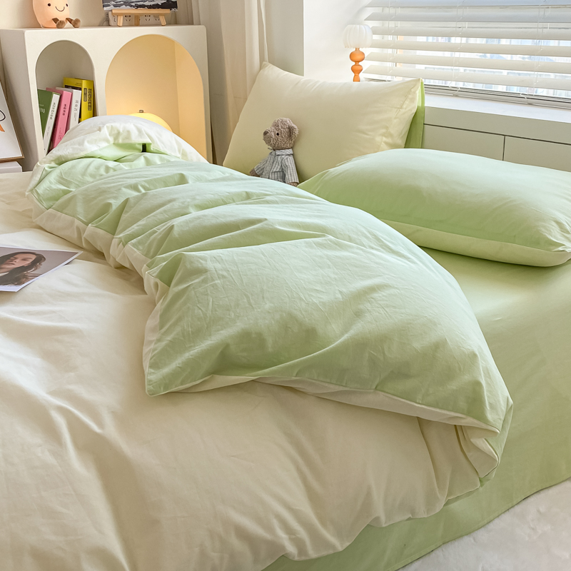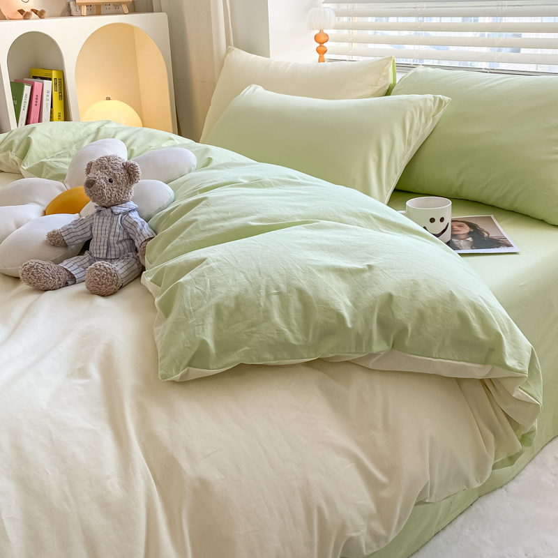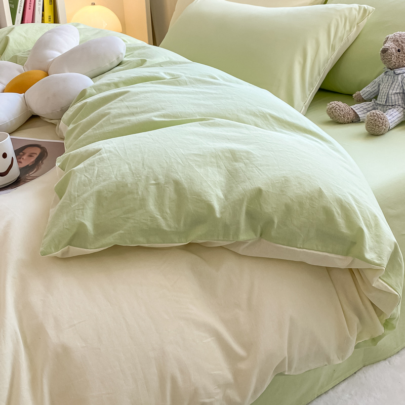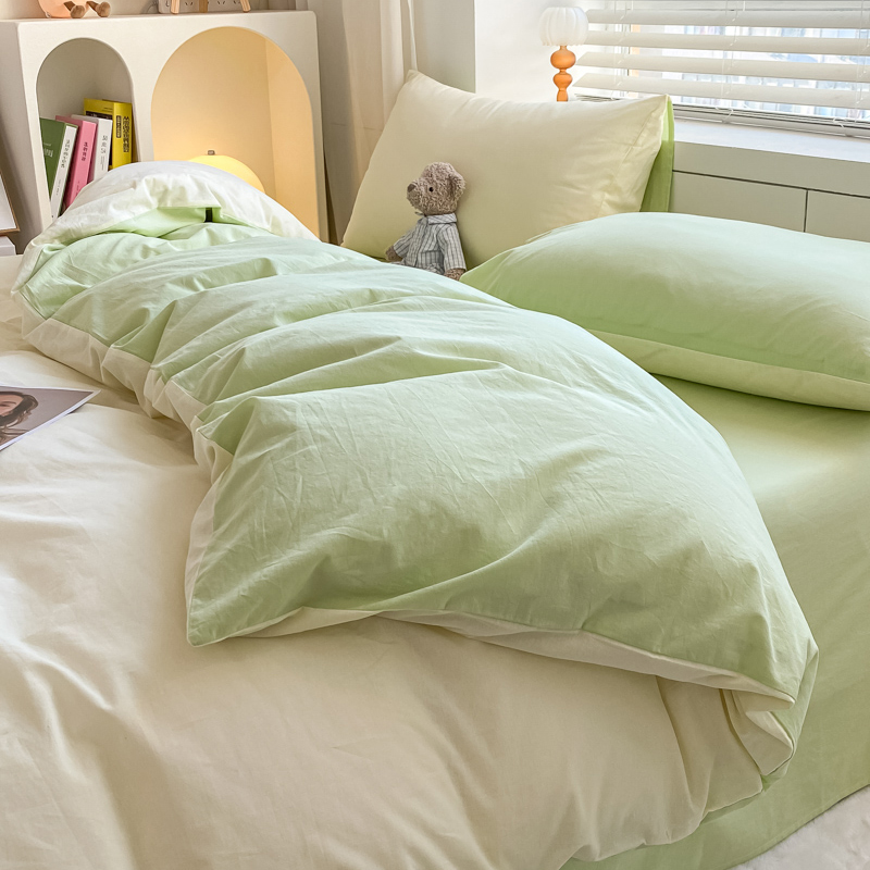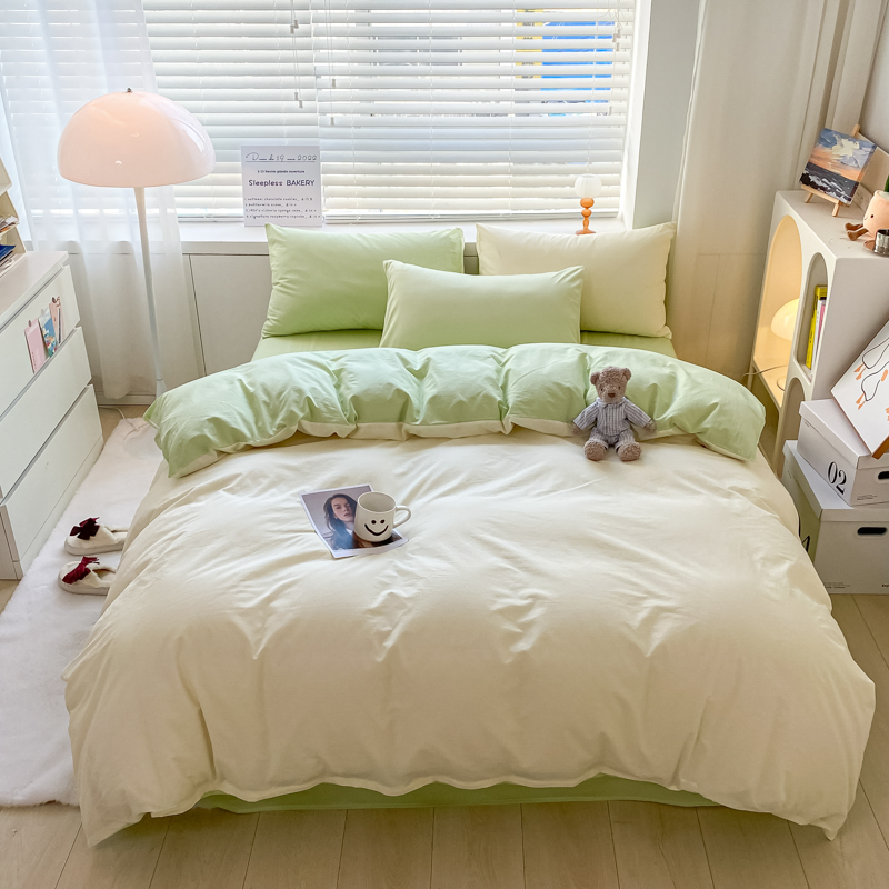 当前位置: 91家纺网 > 商品网购 > 床品套件 > 四件套 > 水洗棉四件套 > 盼季家纺 2023新款纯色双拼简约水洗棉四件套 芝士果绿-双拼
