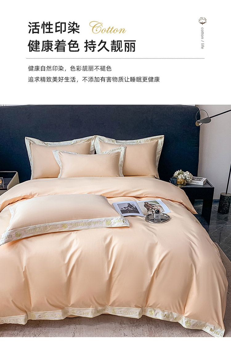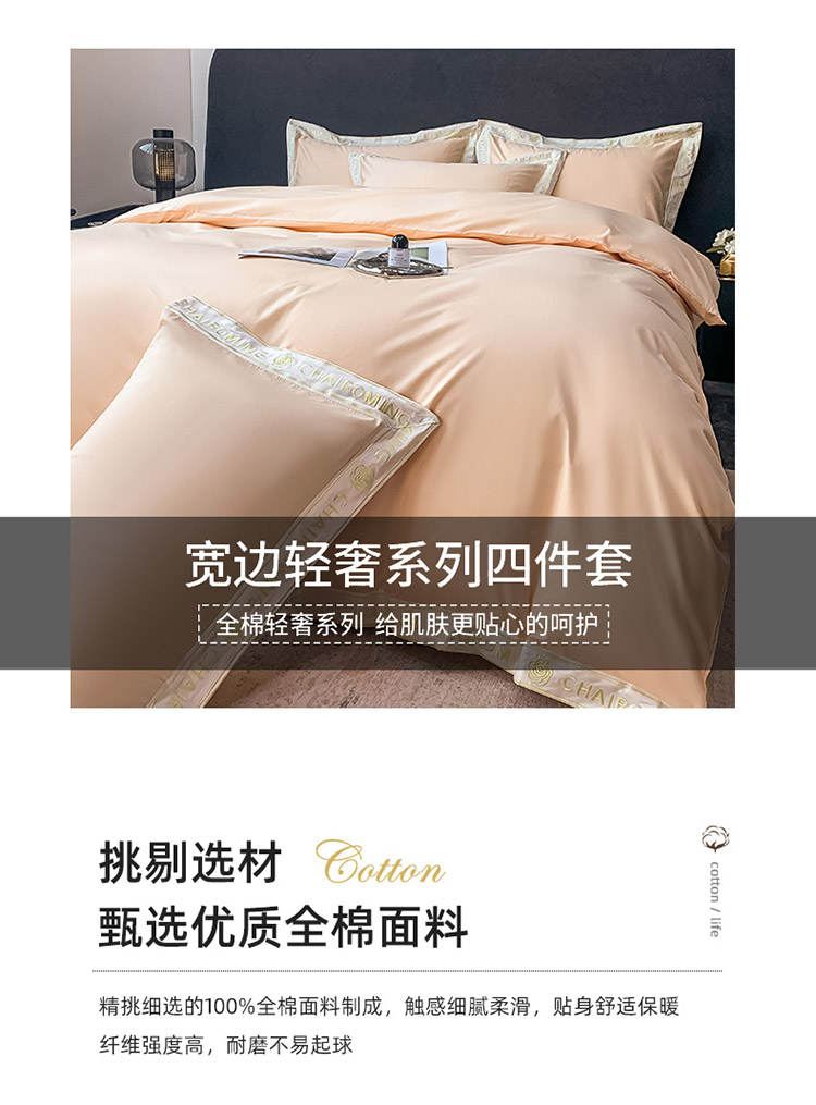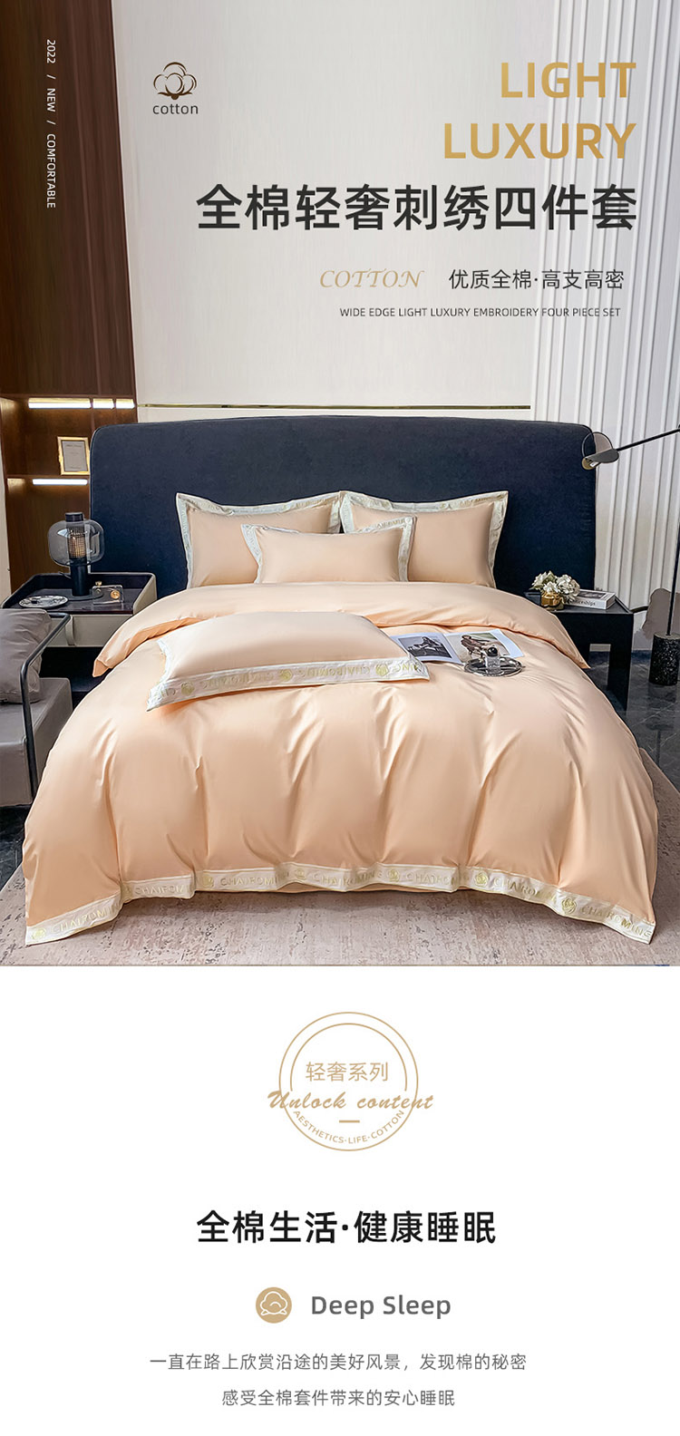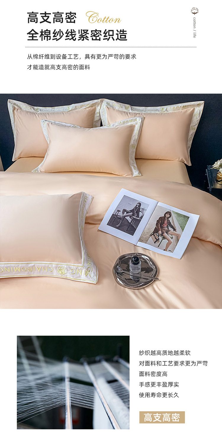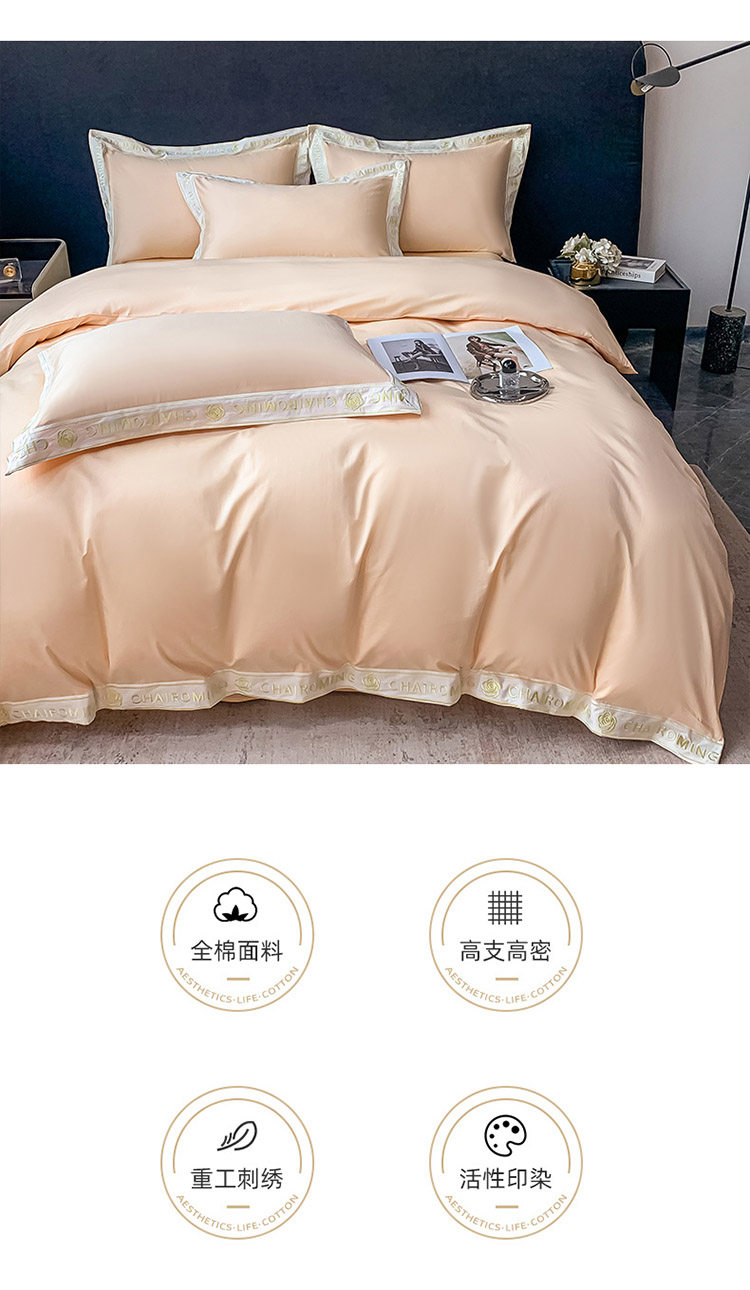 梧桐家居 2023新款13372全棉刺绣宽边四件套-秀色系列 香槟金