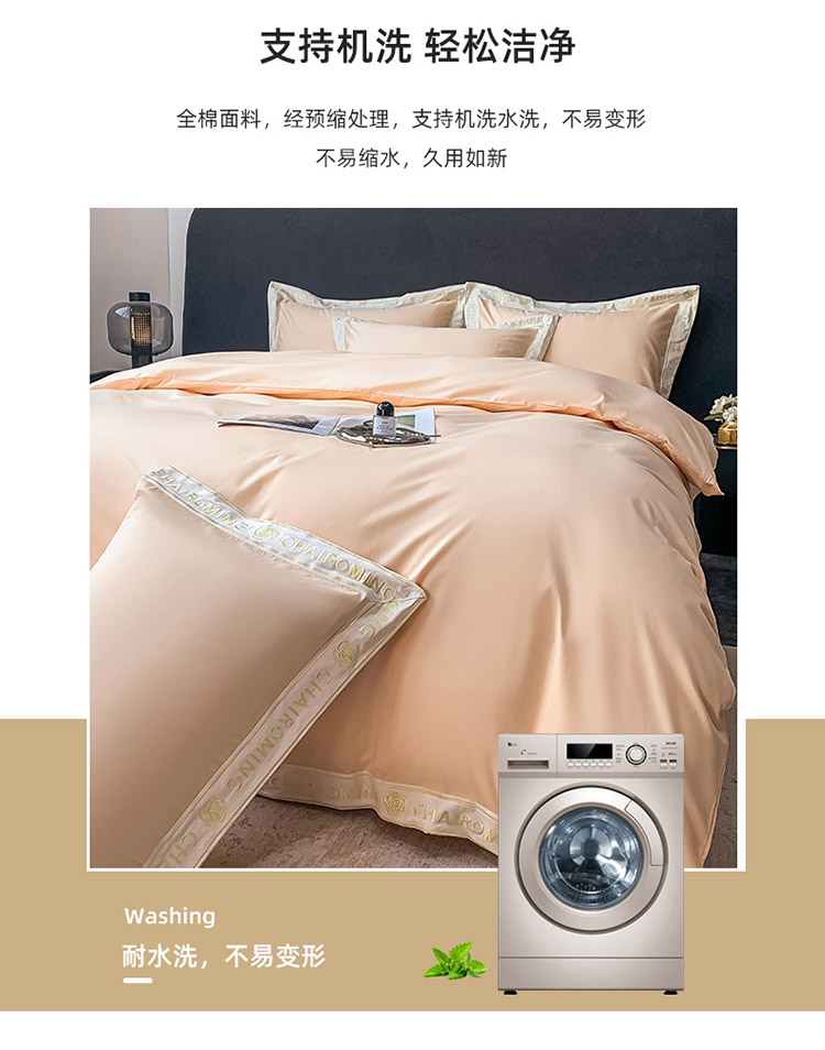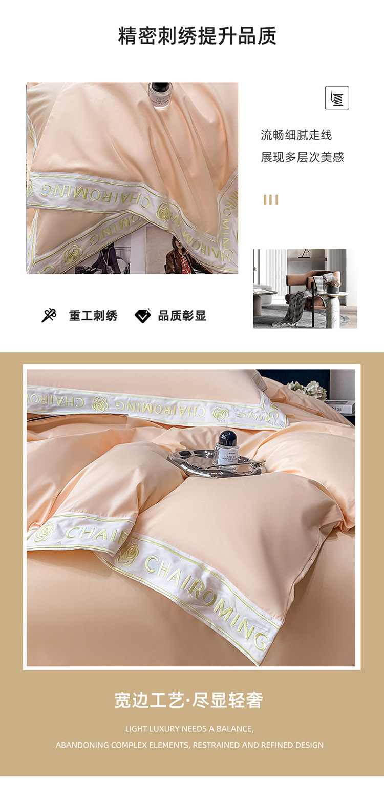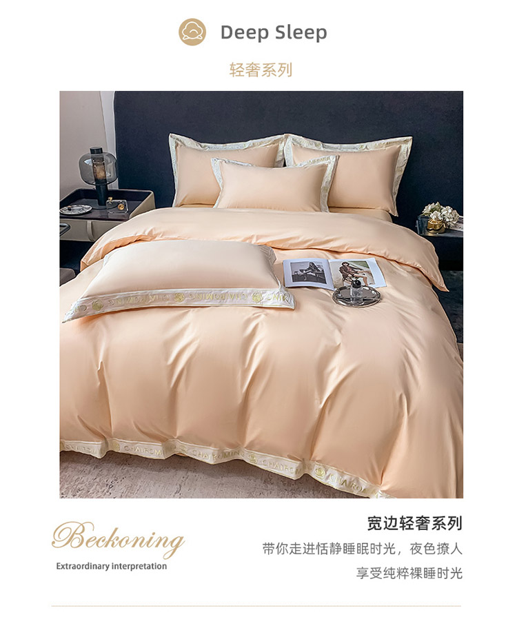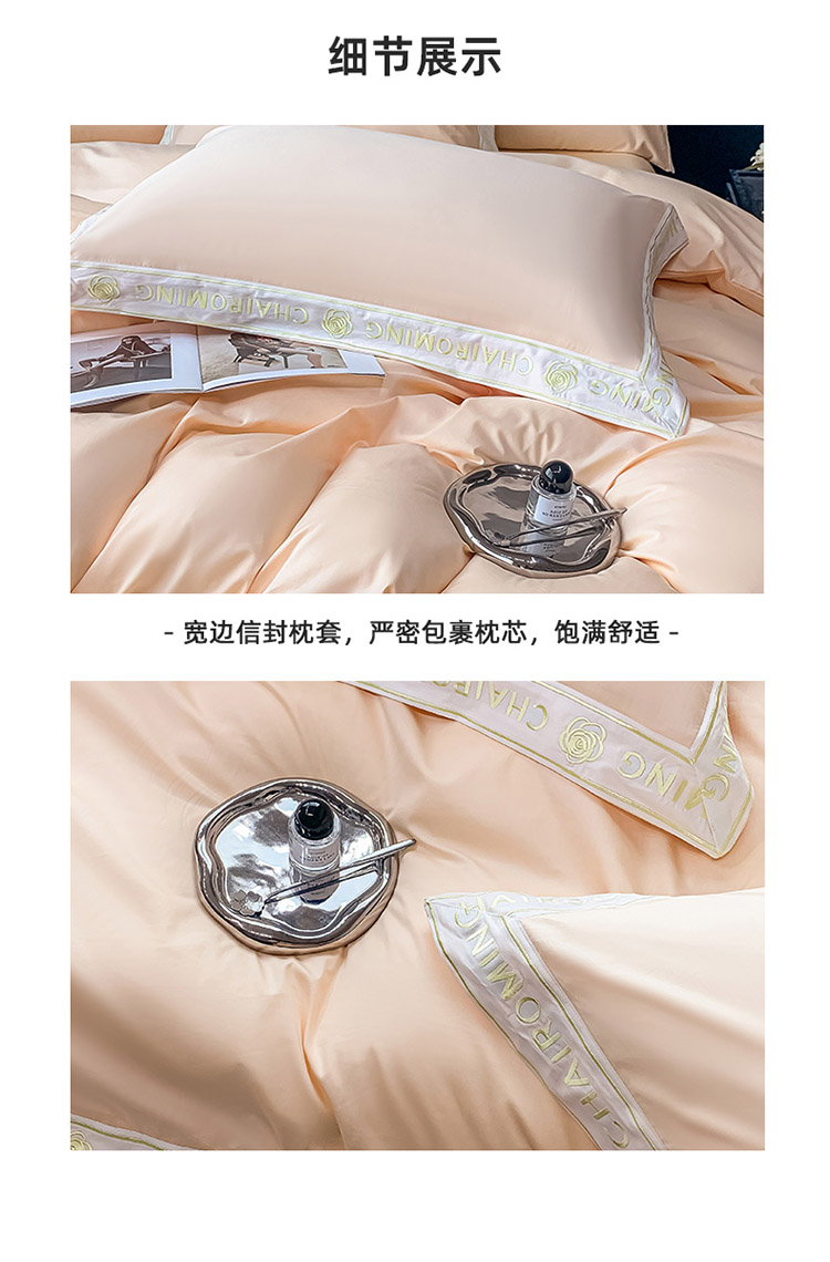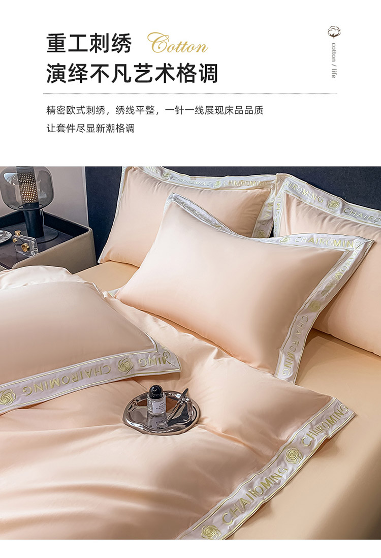 梧桐家居 2023新款13372全棉刺绣宽边四件套-秀色系列 香槟金