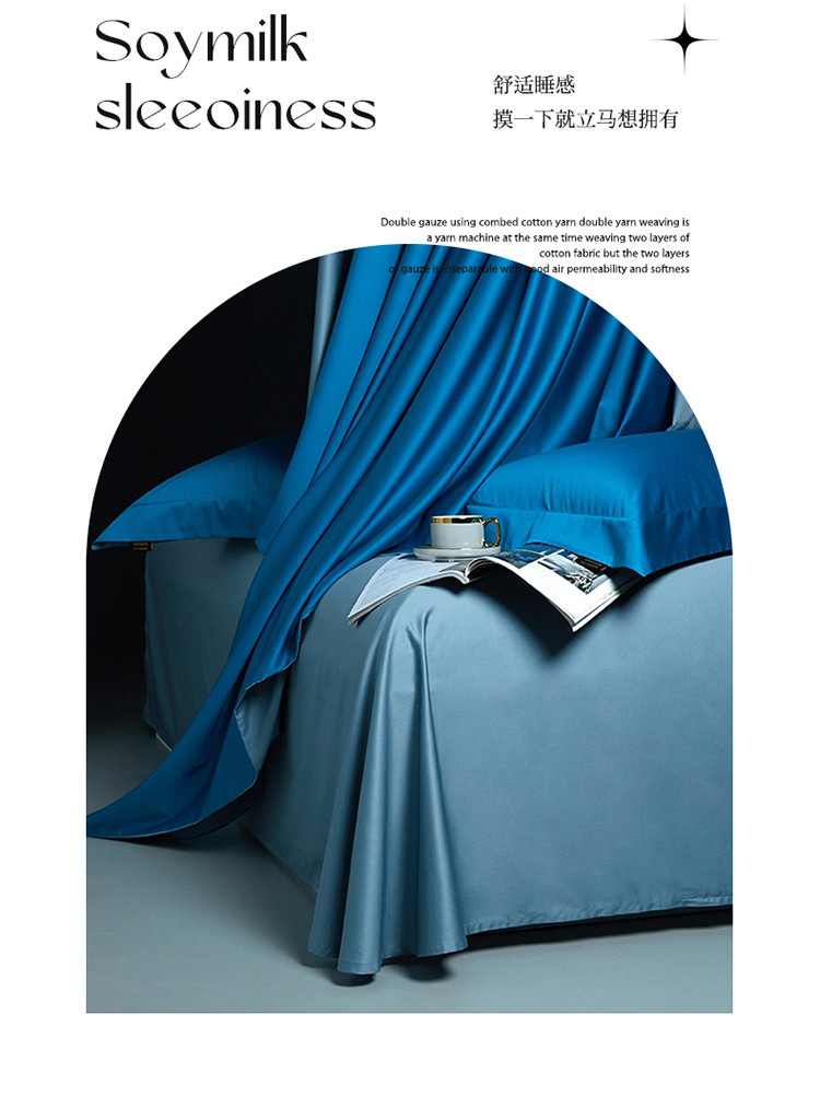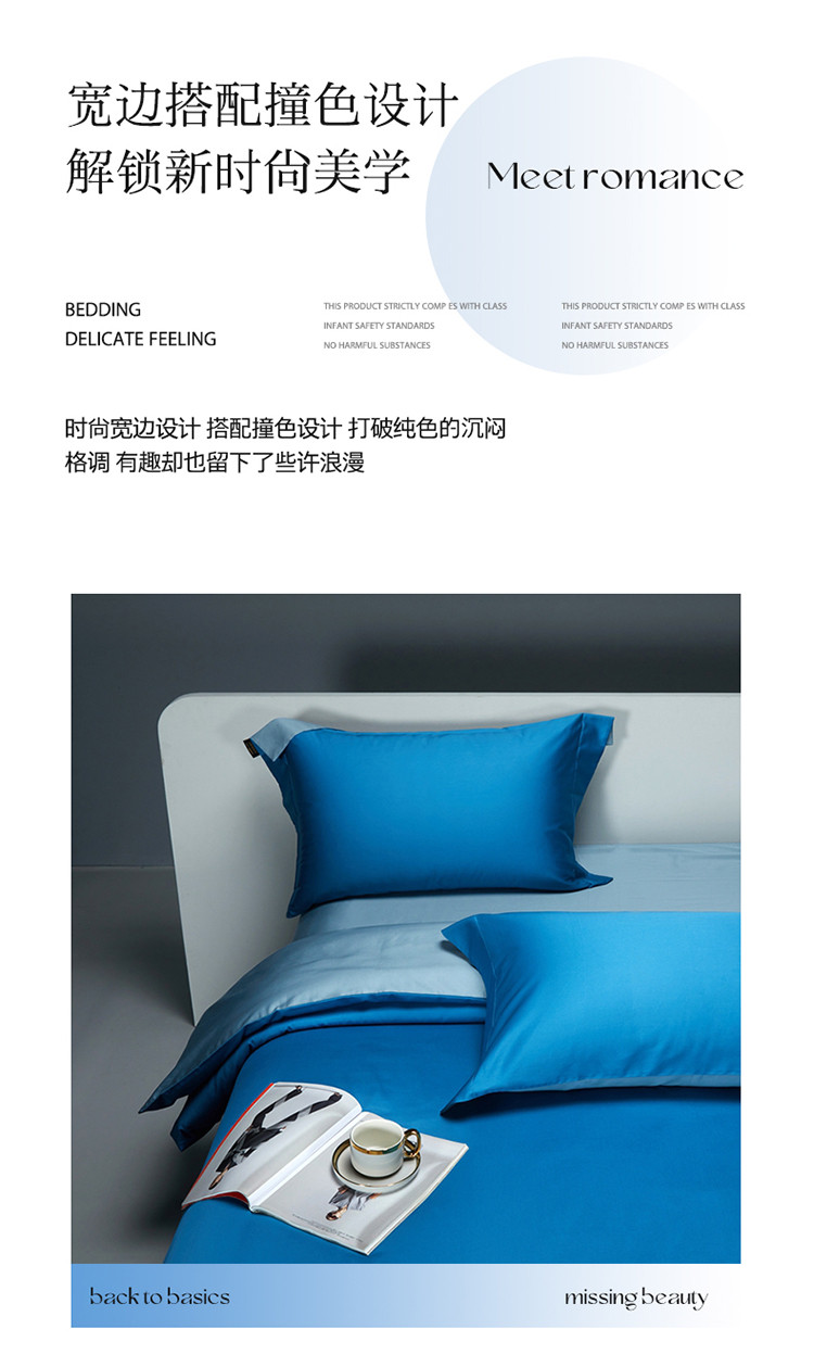 当前位置: 91家纺网 > 商品网购 > 床品套件 > 四件套 > 长绒棉四件套 > 莱阁亿 2023新款高支高密新疆长绒棉纯色双拼四件套 元气蓝&茗翠兰