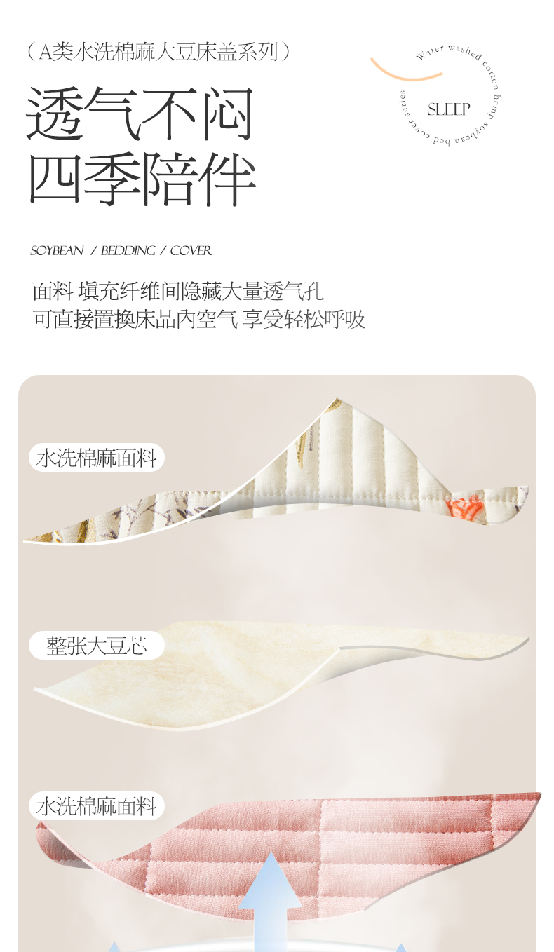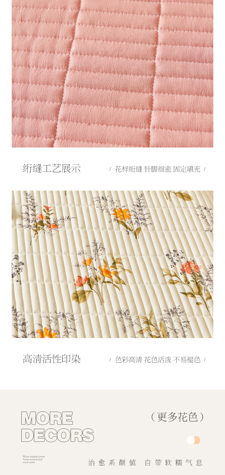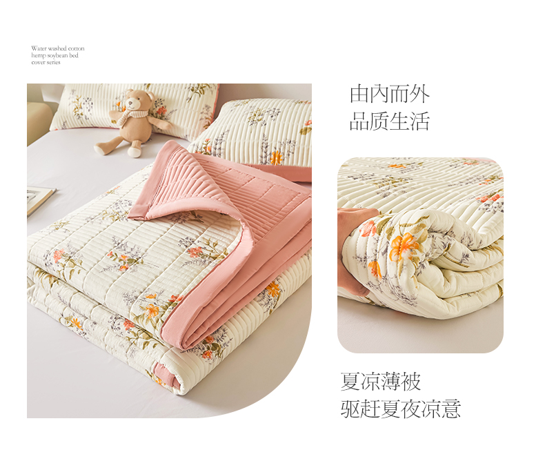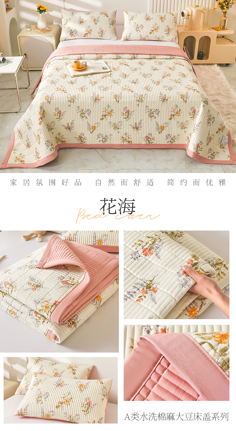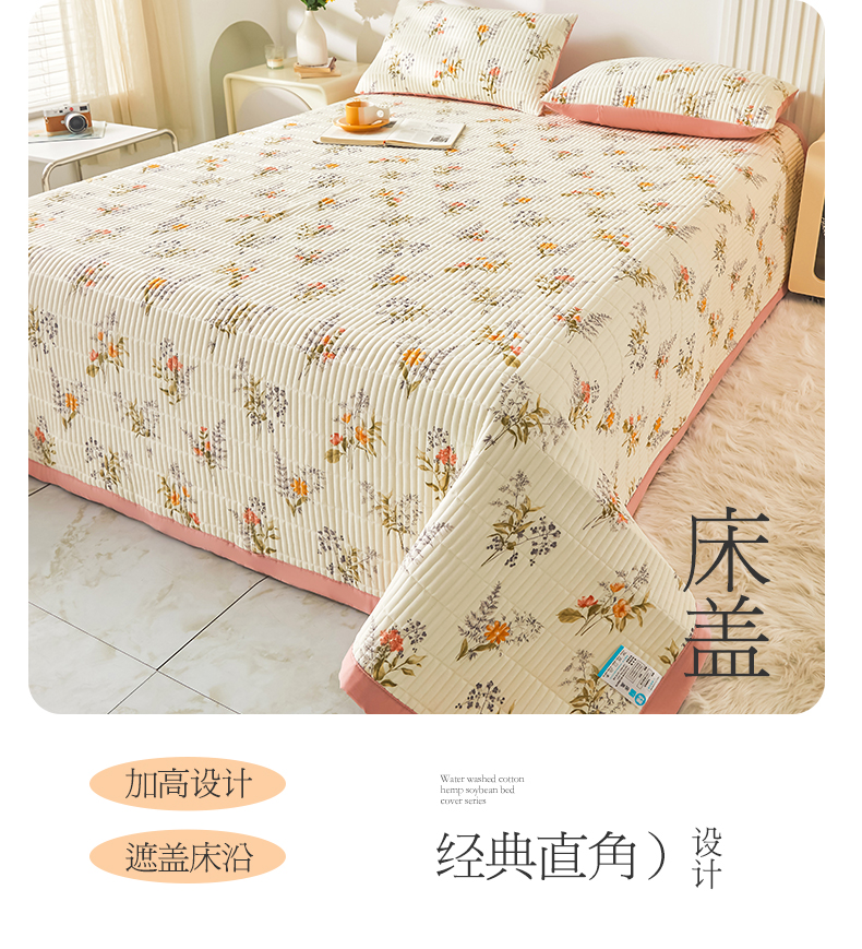 商品名称:水洗棉麻床盖大豆纤维夹棉加厚宿舍铺盖两用床单床裙保护垫花海