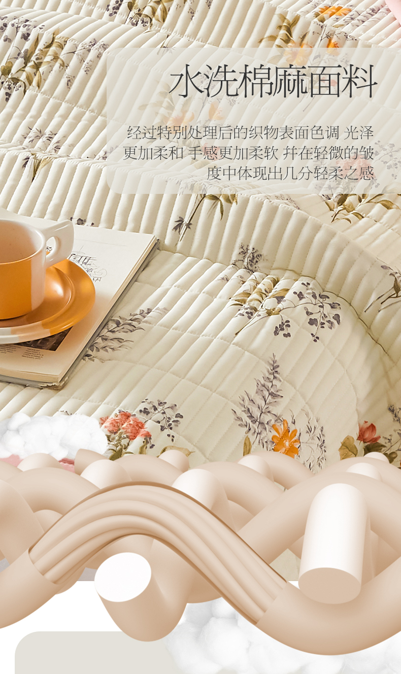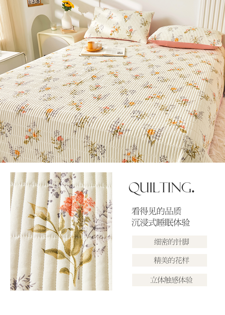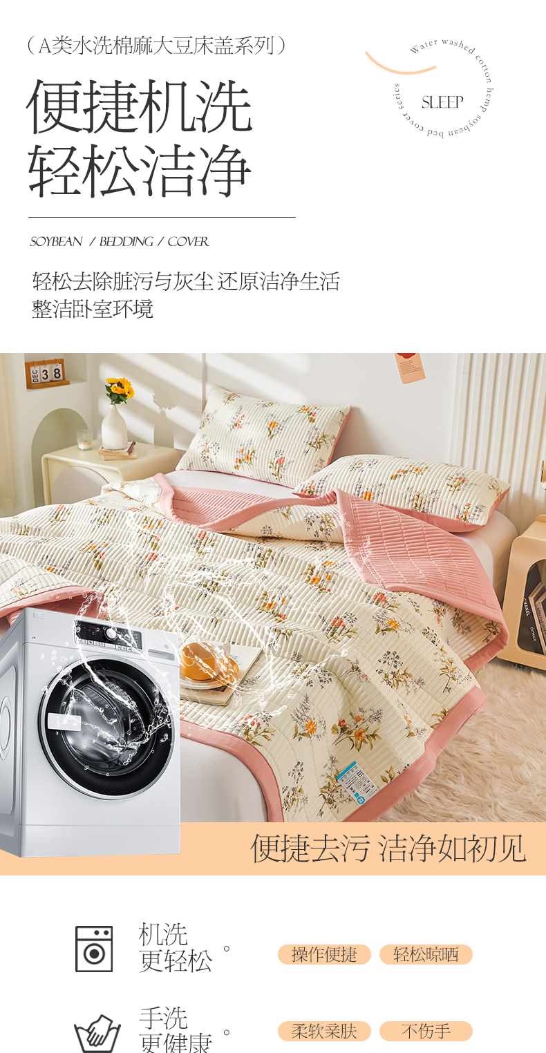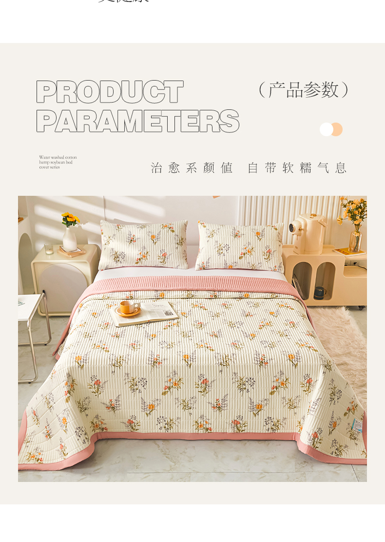 商品名称:水洗棉麻床盖大豆纤维夹棉加厚宿舍铺盖两用床单床裙保护垫花海