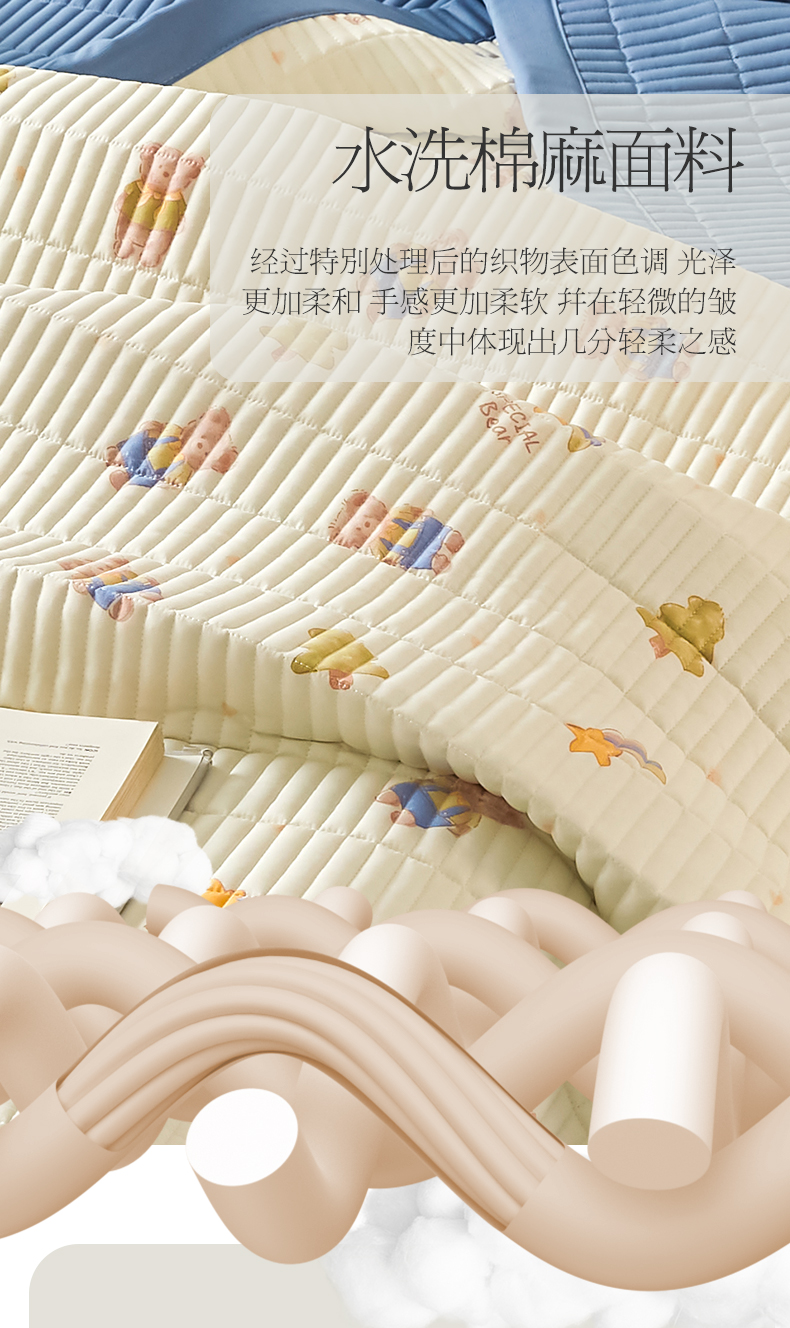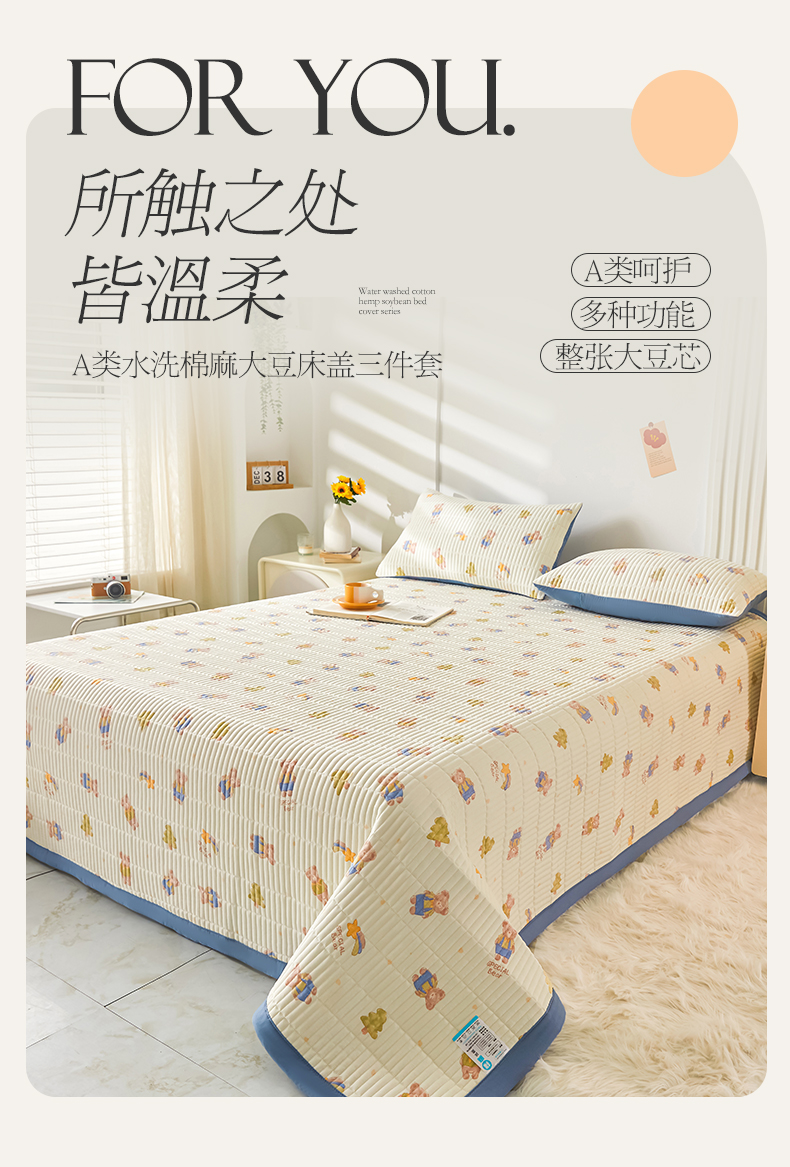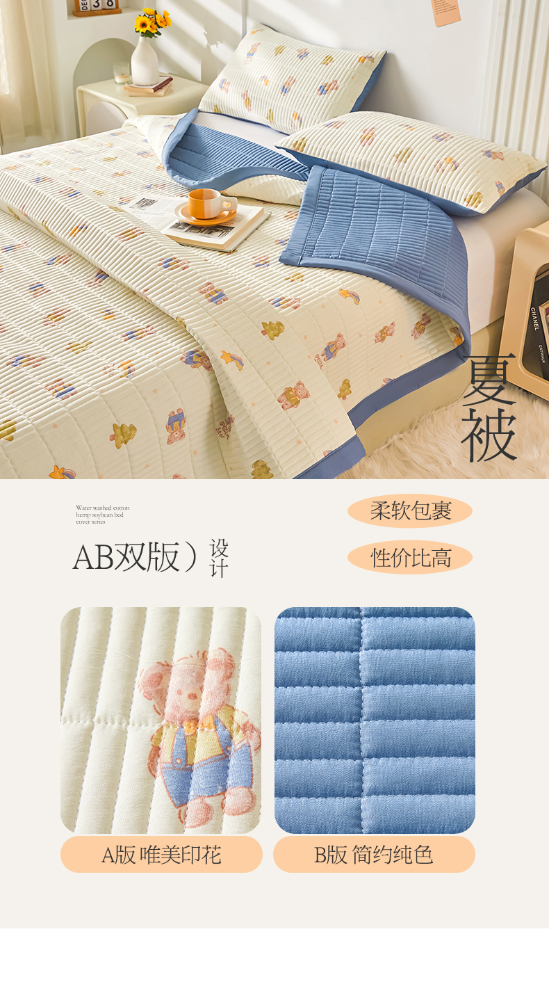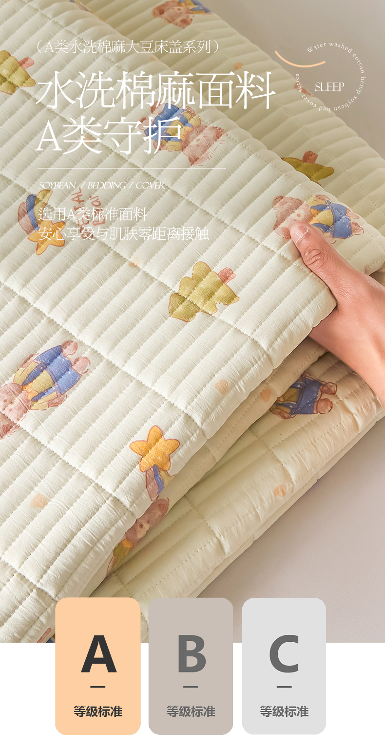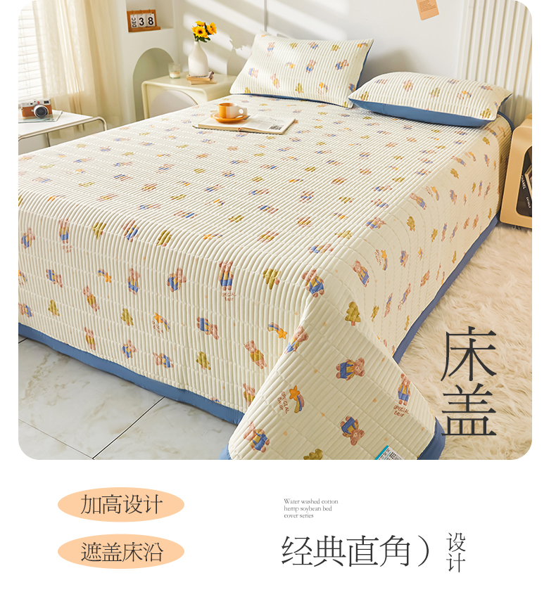 水洗棉麻床盖大豆纤维夹棉加厚宿舍铺盖两用床单床裙保护垫 童话乐园