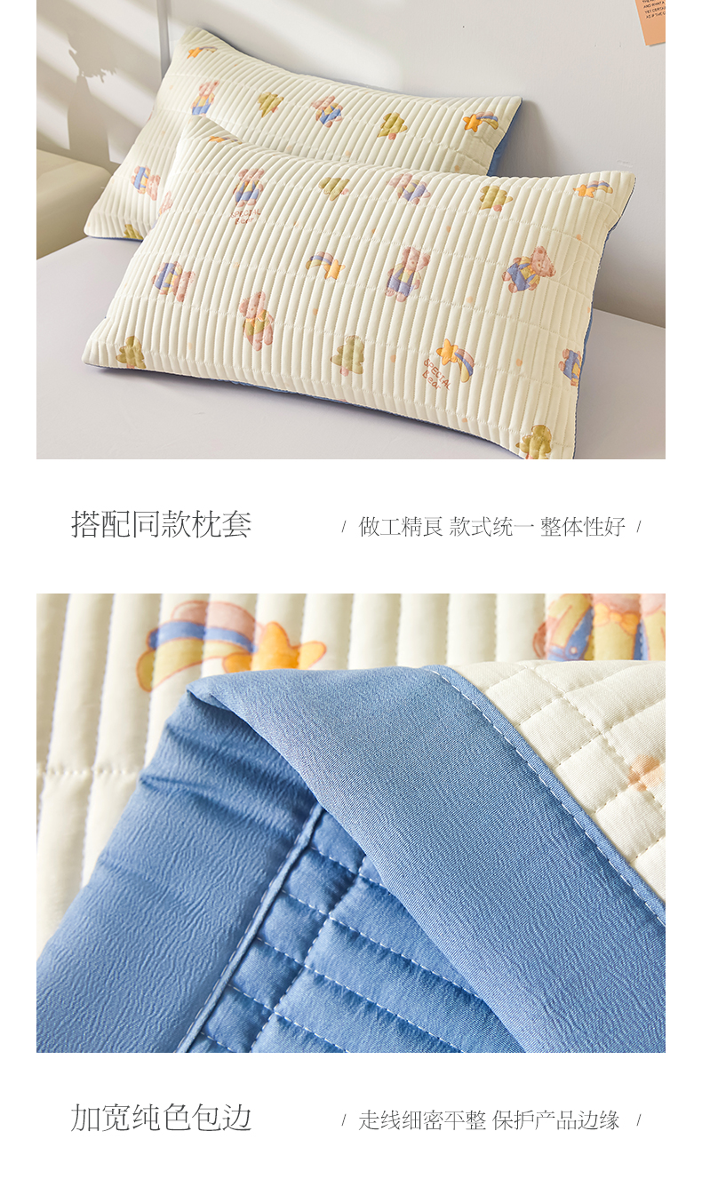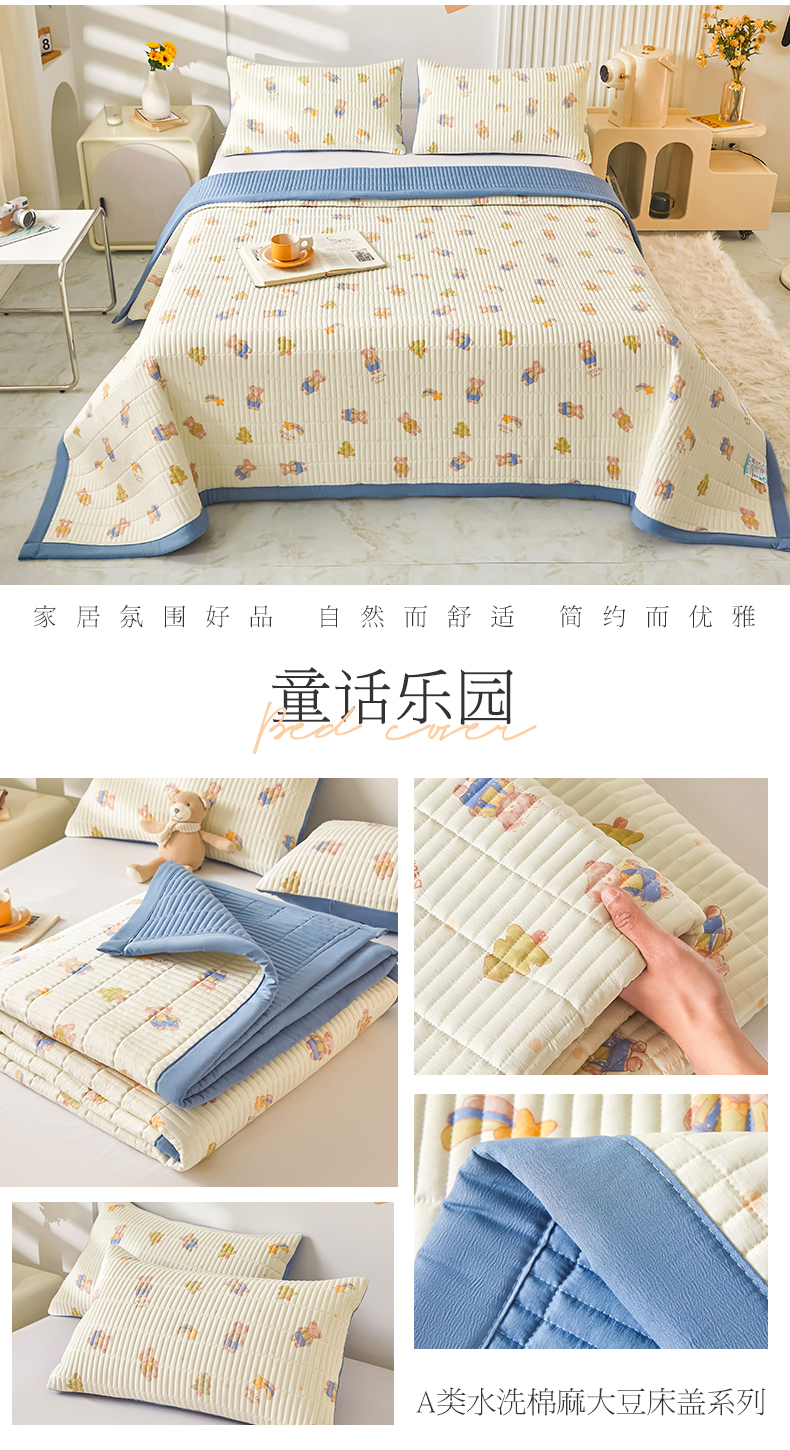商品名称:水洗棉麻床盖大豆纤维夹棉加厚宿舍铺盖两用床单床裙保护垫 童话乐园